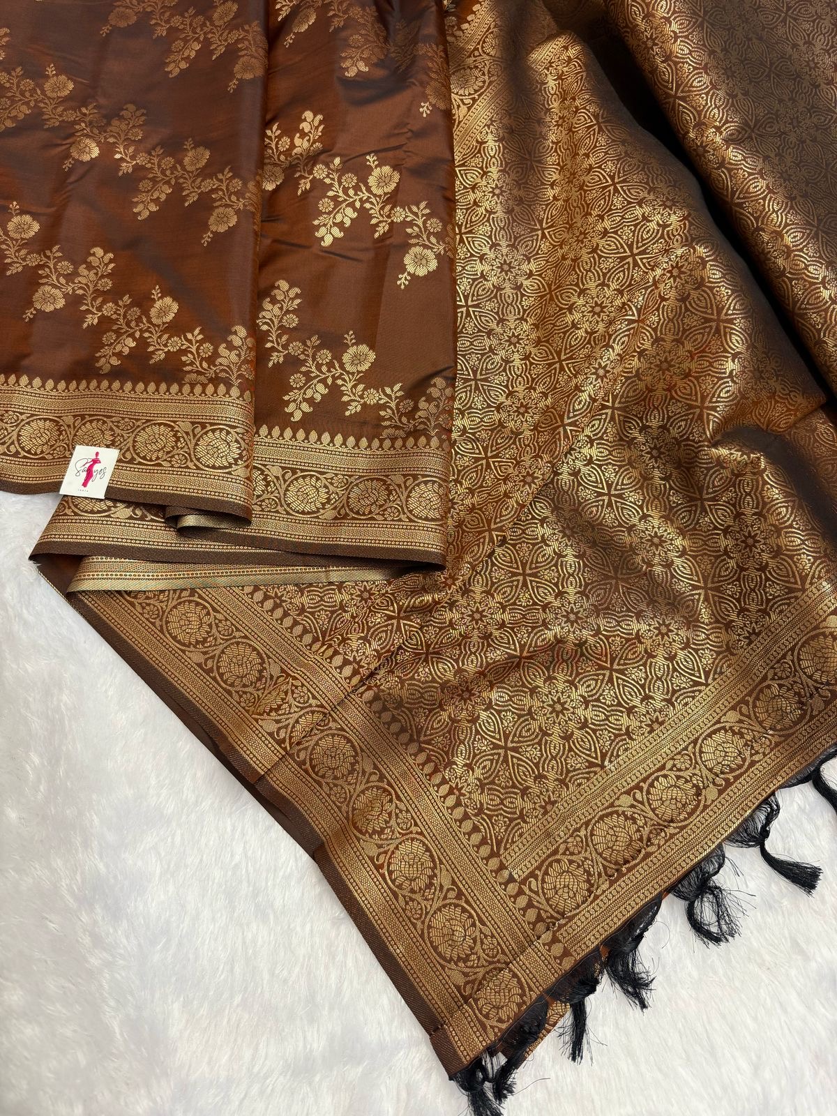 This saree is ideal for weddings, festive occasions, and grand celebrations, pairing well with traditional gold jewelry for a regal look.