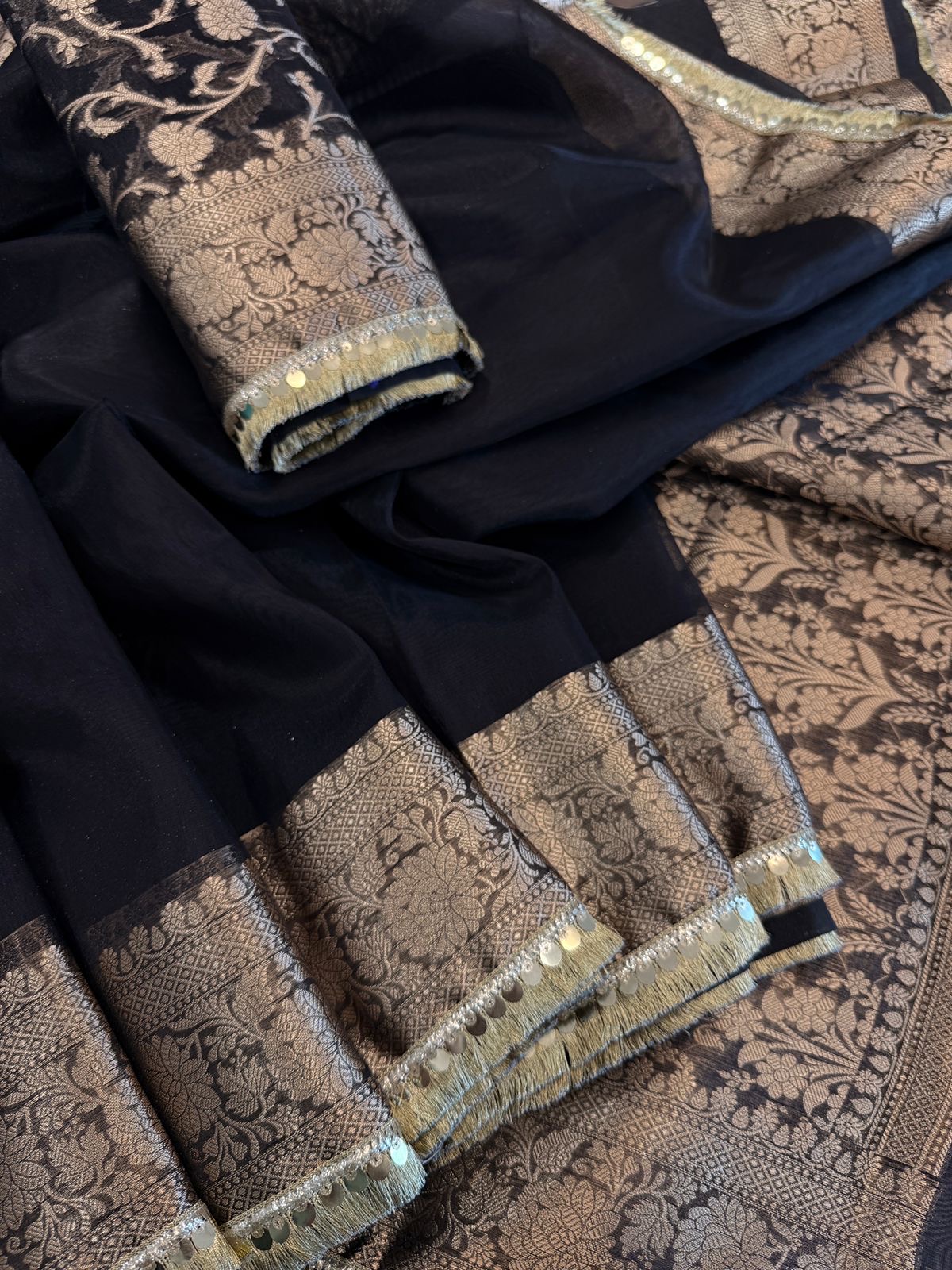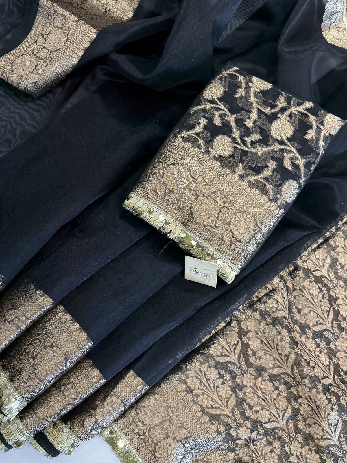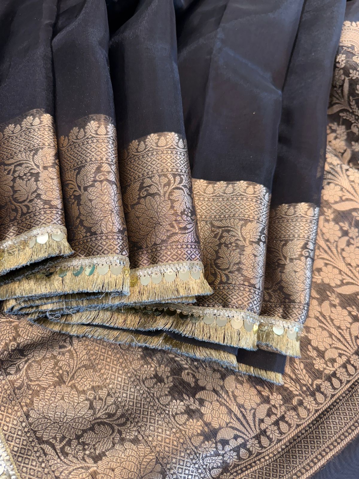 ✨ Banarasi Tissue Silk – Black Zari Royale ✨