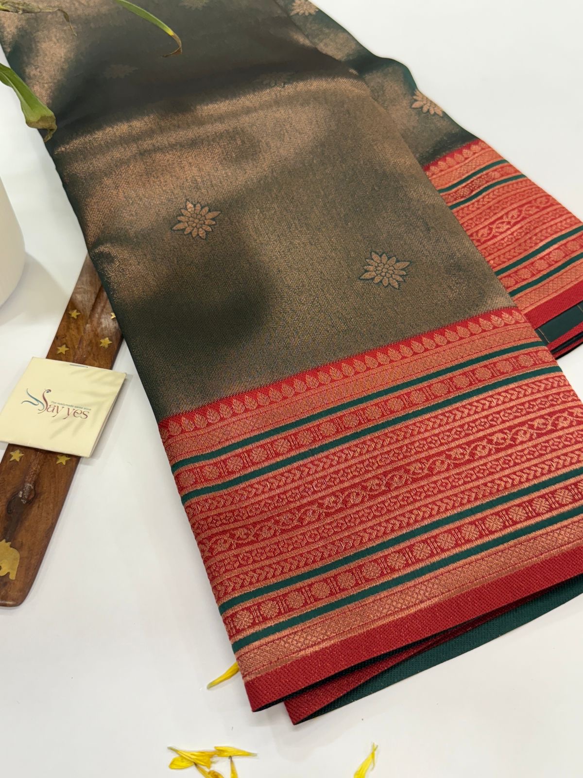 This tissue silk saree offers comfort, ease of walking and sitting, simplicity and effortless maintenance.