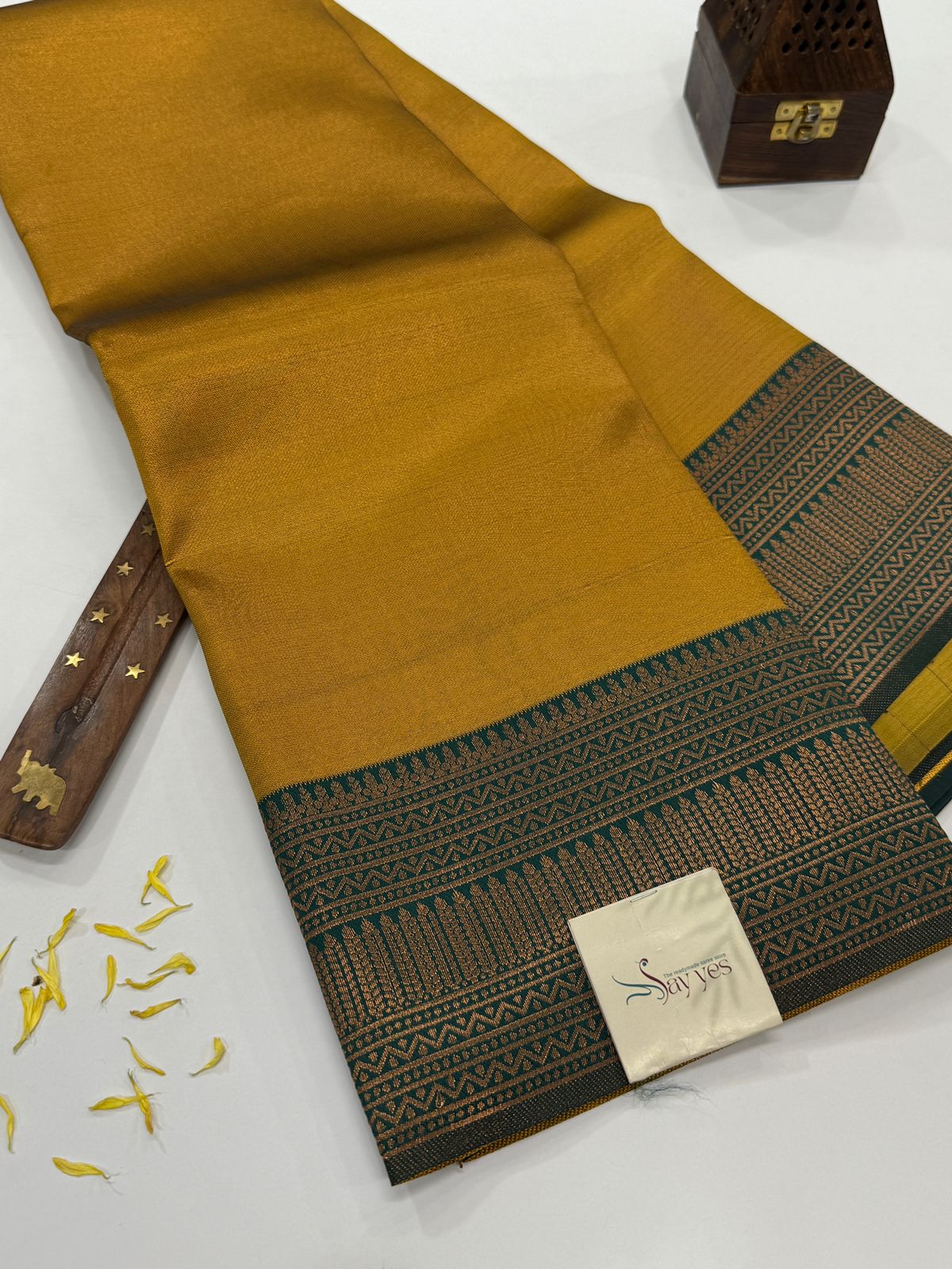 Aurelia (Soft tissue silk) – Yellow & Bottle green