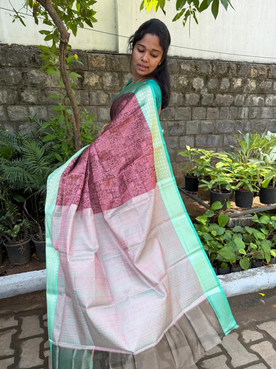 Our Banarasi soft silk sarees usher royal look with jari infused with saree thread all throughout the body and pallu . This edition, is so unique, as it has Bronze jari woven on the body of the saree, and the pallu.