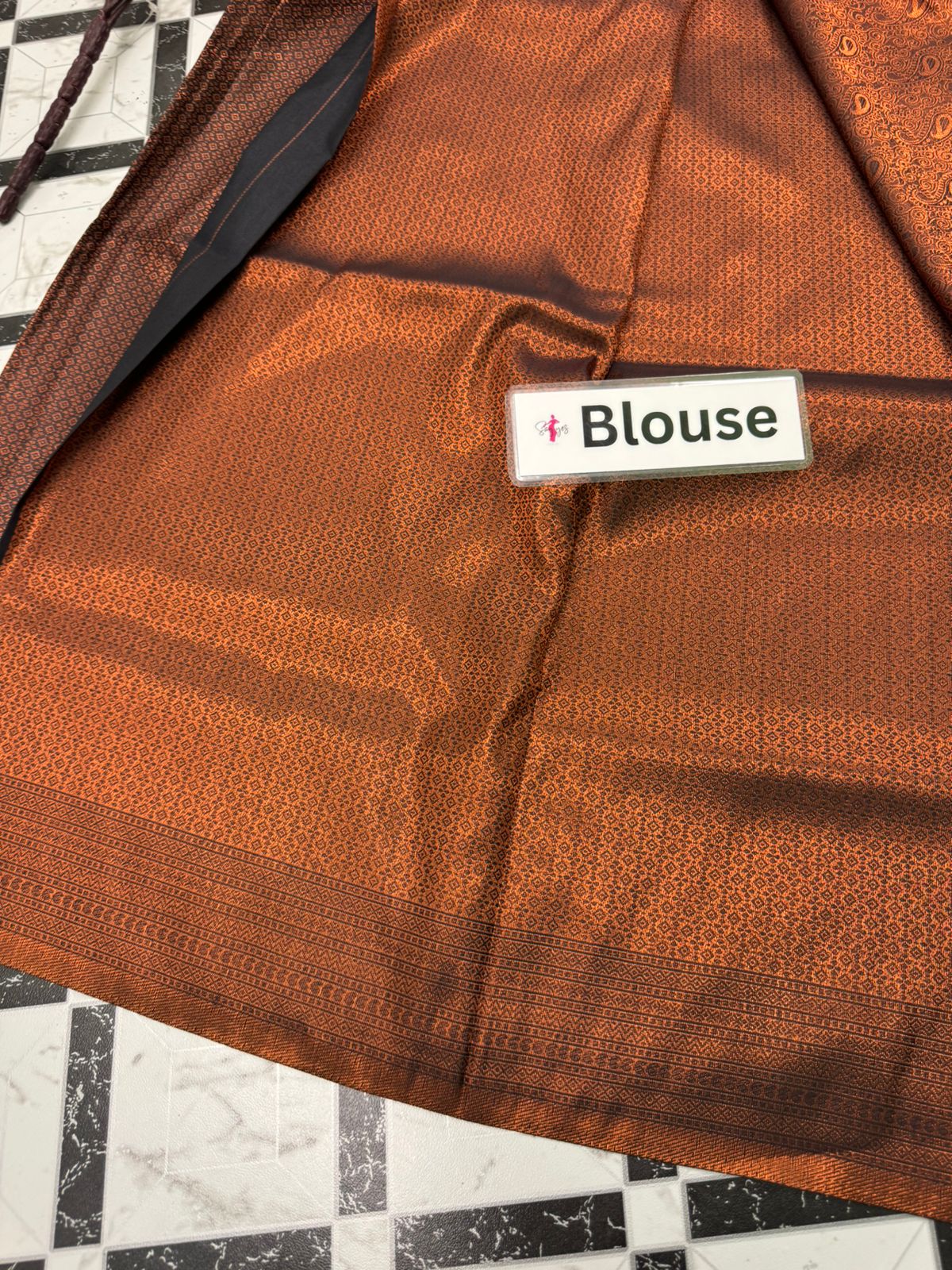 Our Banarasi soft silk sarees usher royal look with jari infused with saree thread all throughout the body and pallu . This edition, is so royal as it has jari woven on the body of the saree, and the pallu.