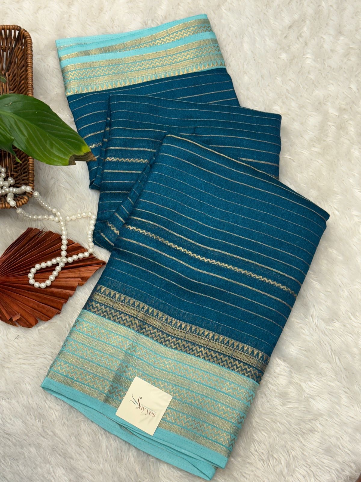 Bhumi (Semi Mysore crepe) – Teal blue