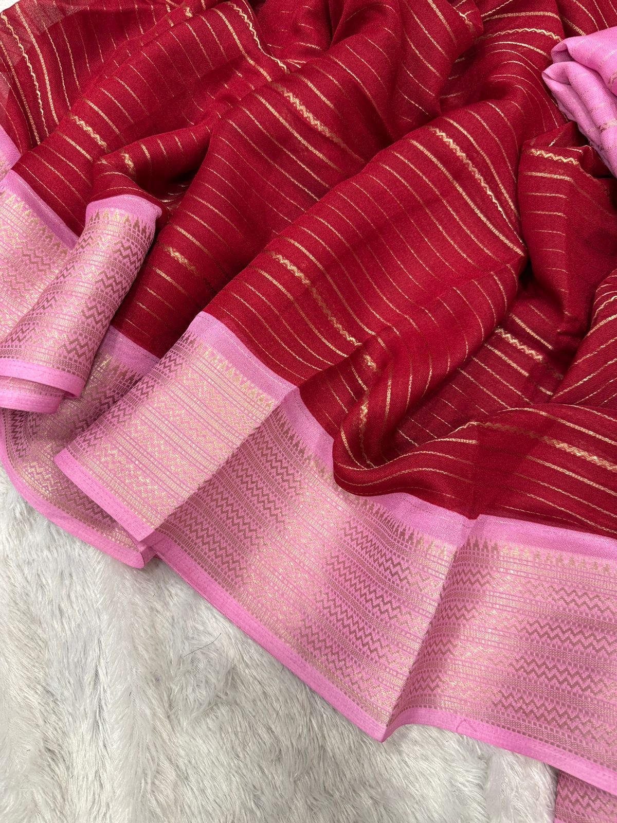 Lightweight yet regal, this saree moves beautifully with you—never stiff, never heavy—just quietly luxurious.