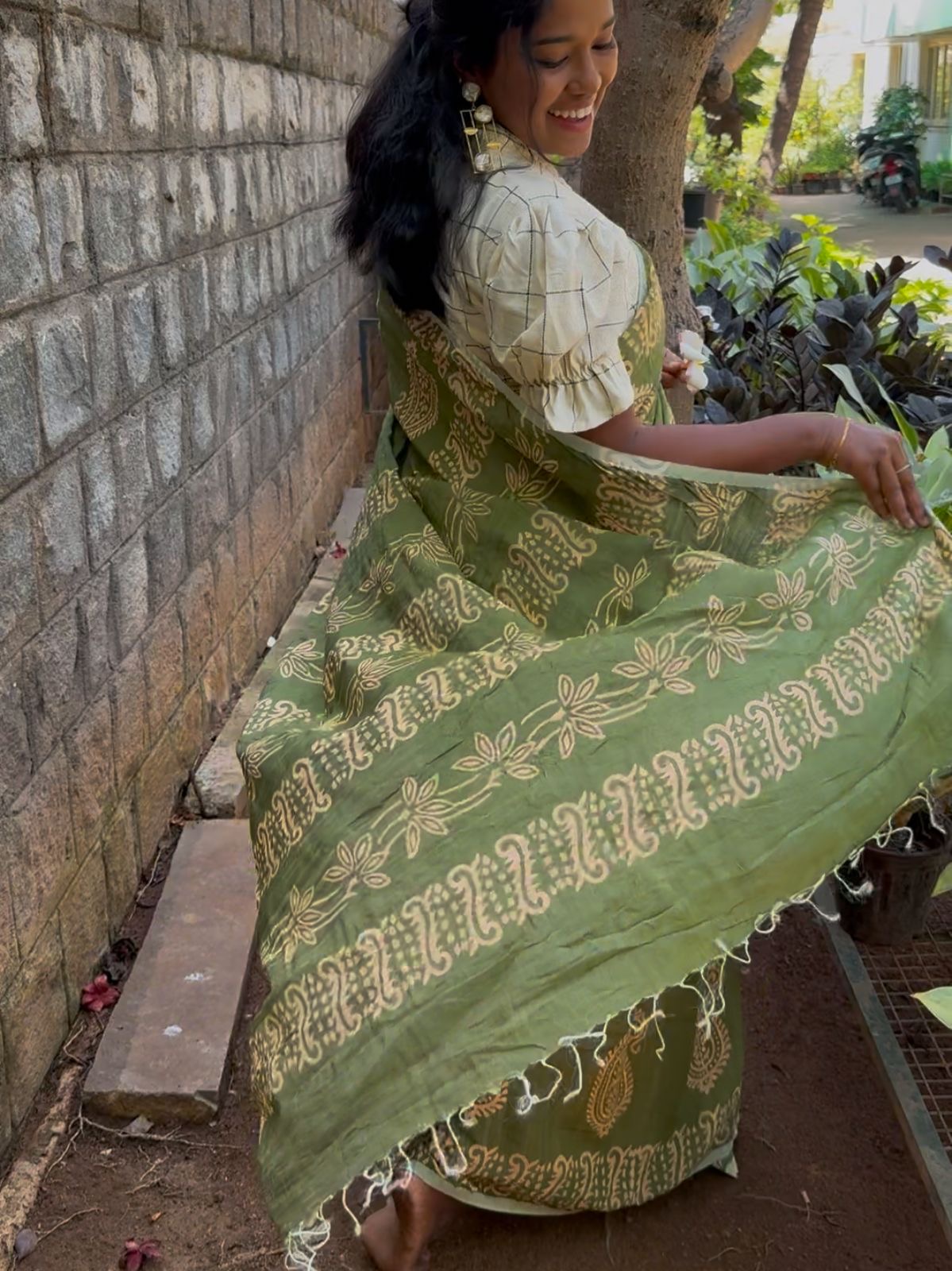 Block printed mul cotton(saree) – Algae green