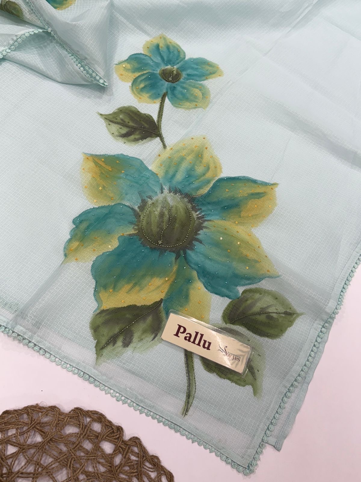 Blush & Bloom (Hand-painted Kota) – Blue