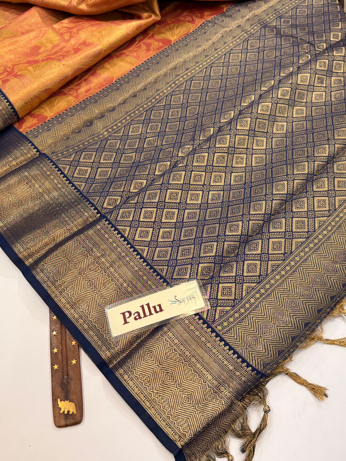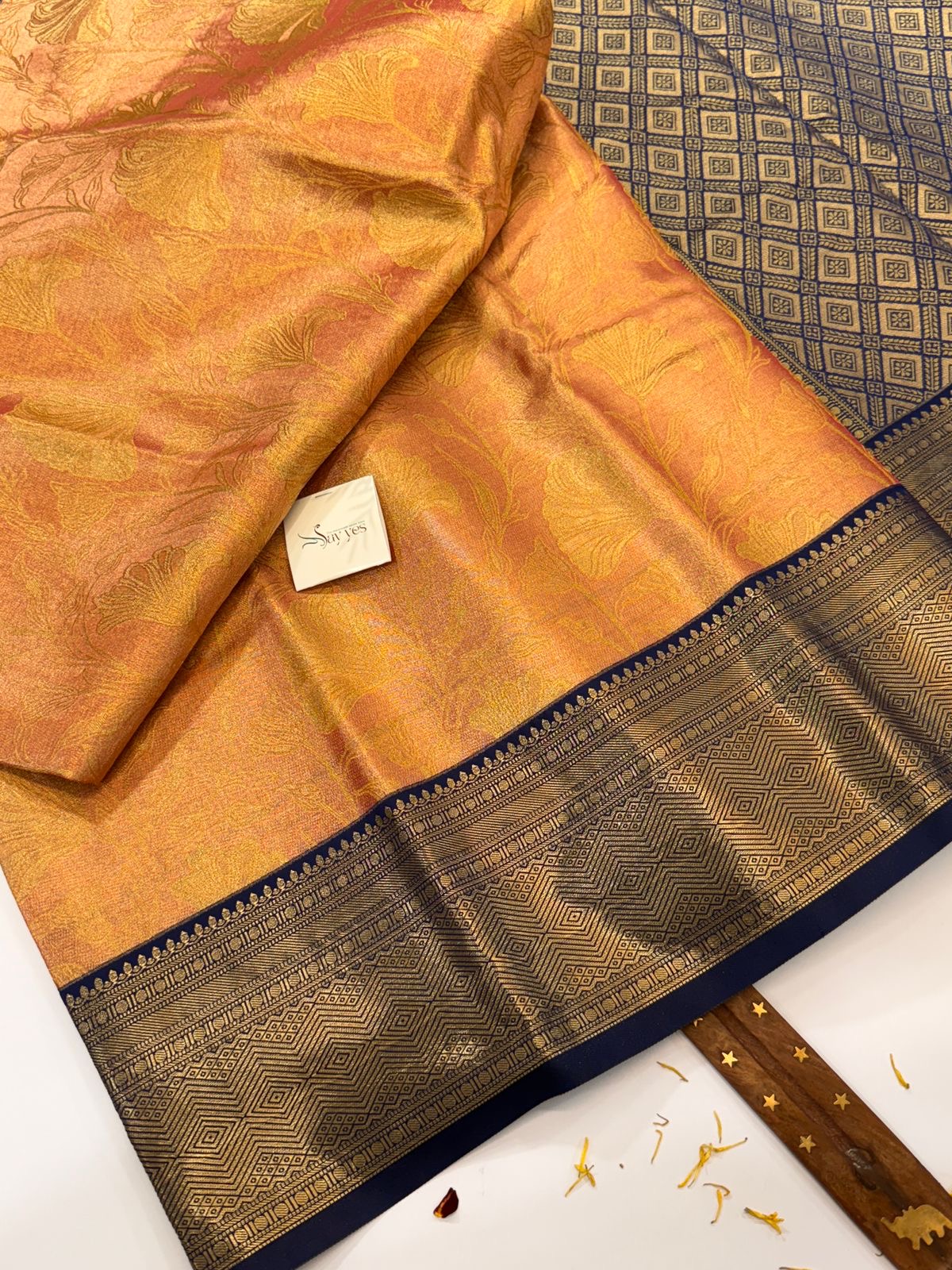 Chandrika (Kancheevaram tissue silk) – Golden peach & Navy