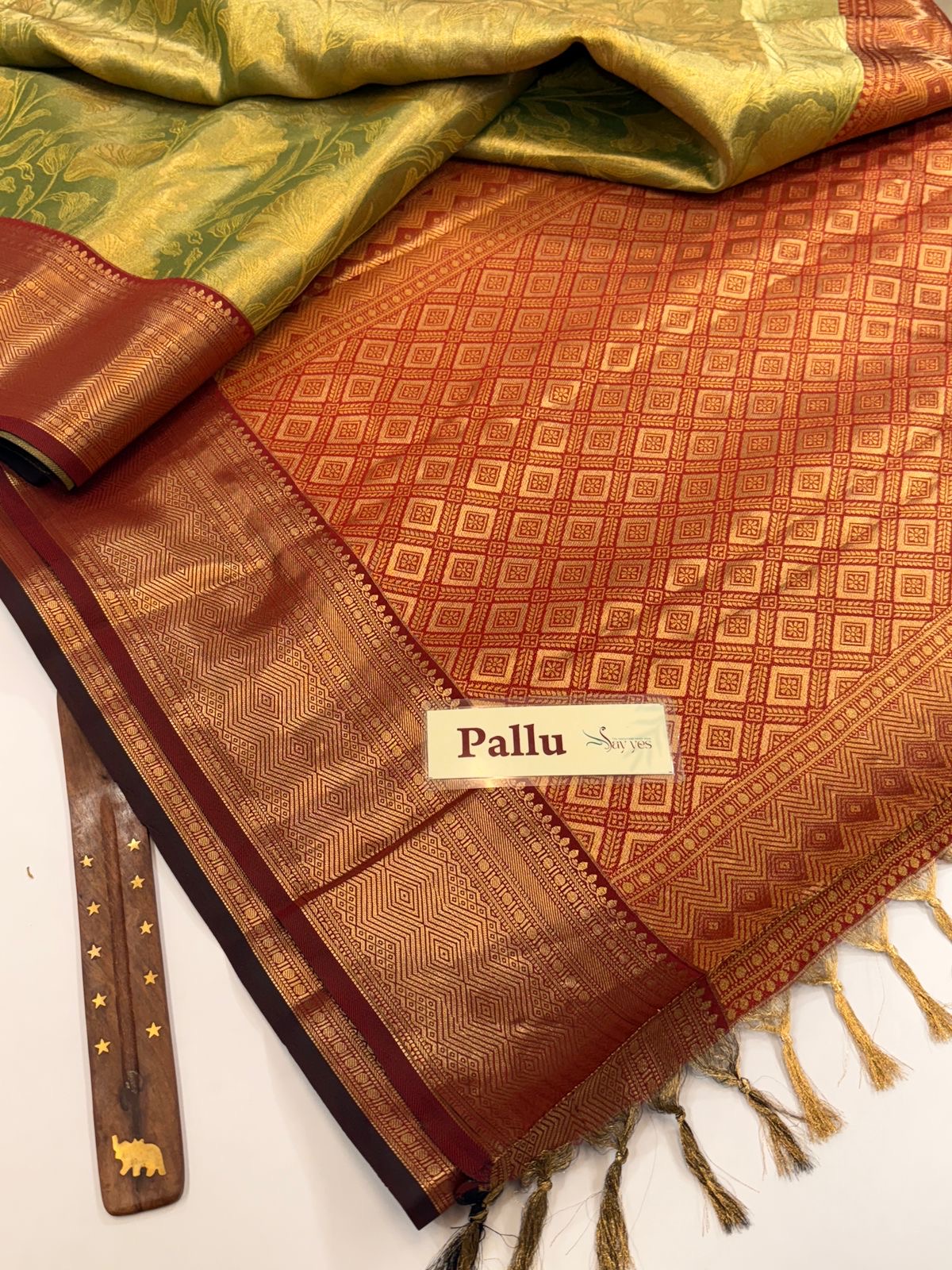 Chandrika (Kancheevaram tissue silk) – Pista green & Maroon