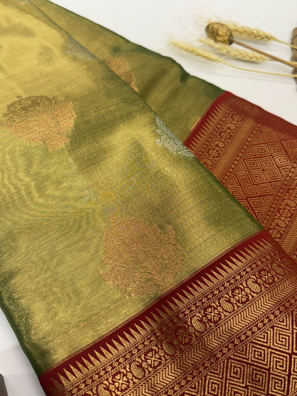 Dakshayini (Kancheevaram soft silk)- Pista Green & Maroon