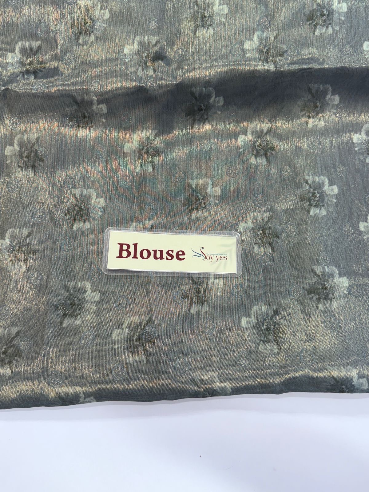 The pallu unfurls in a misty slate grey canvas, adorned with impressionist floral motifs in blush, ivory, and moss tones — an artistic interplay of color and texture that evokes serene elegance. Delicate hand-tied tassels trace the hem, lending a refined artisanal finish.
