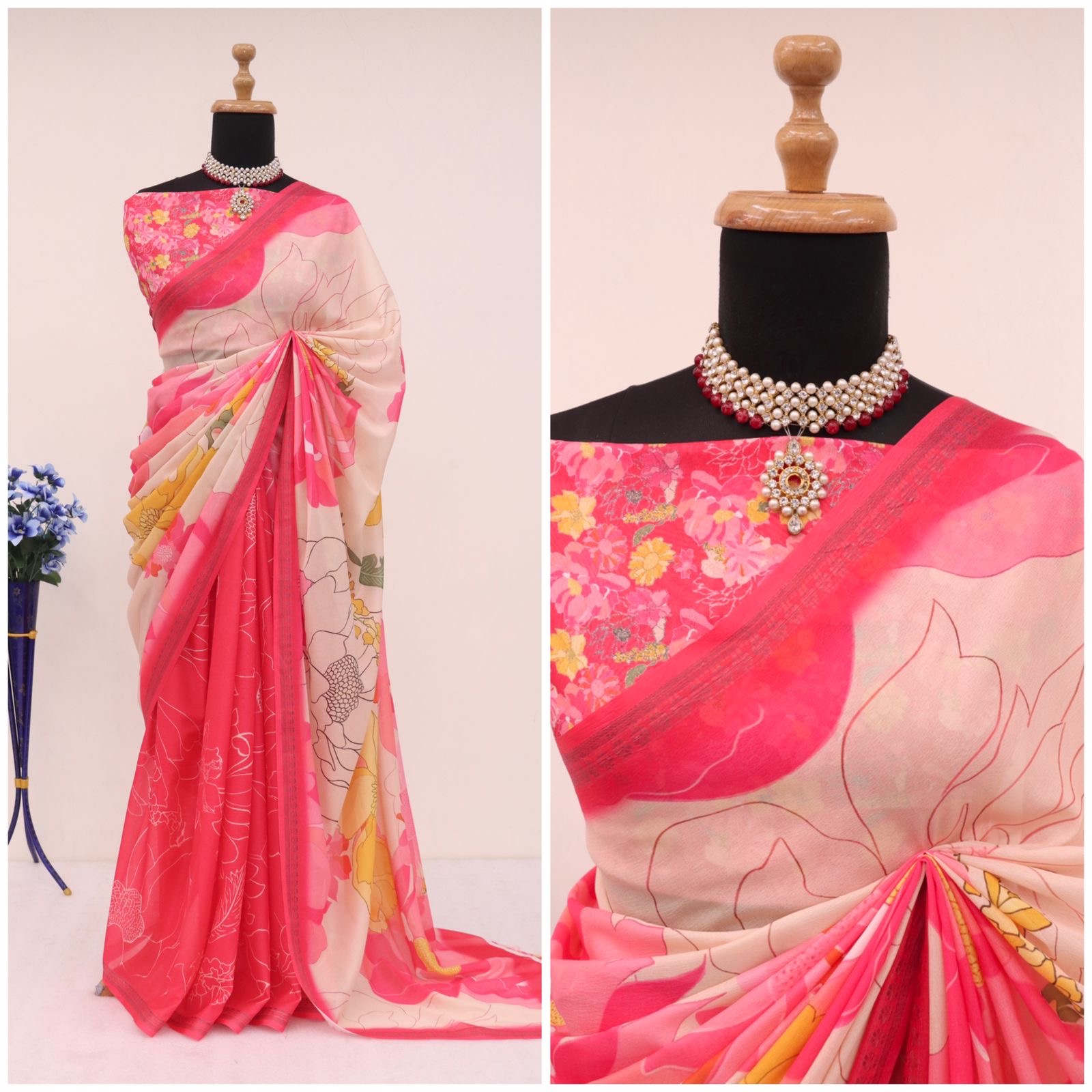 Crafted for the modern woman with a love for color and style, this saree is perfect for festive occasions or sunny daytime events. Its lightweight fabric drapes effortlessly, giving you comfort with every graceful movement. Embrace the tropical charm and let this saree make you feel radiant and confident.