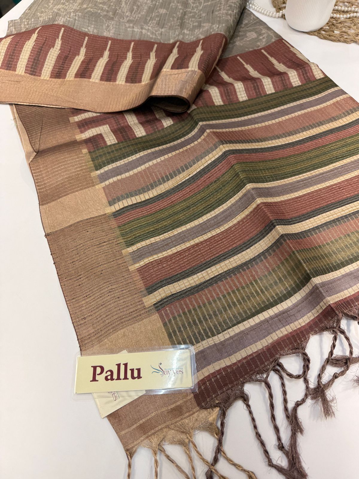 - Fabric: Kattam woven Tussar silk