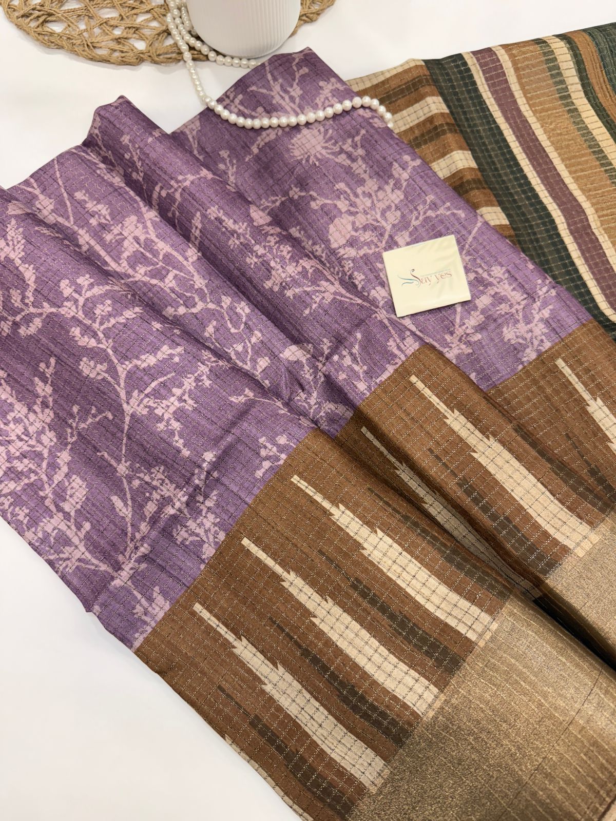 Its highlight lies in the beautifully woven Ikkat borders, adding a traditional yet sophisticated finish. The pallu continues the dreamy story making the saree perfect for daytime casual outings, gatherings, or soulful celebrations.