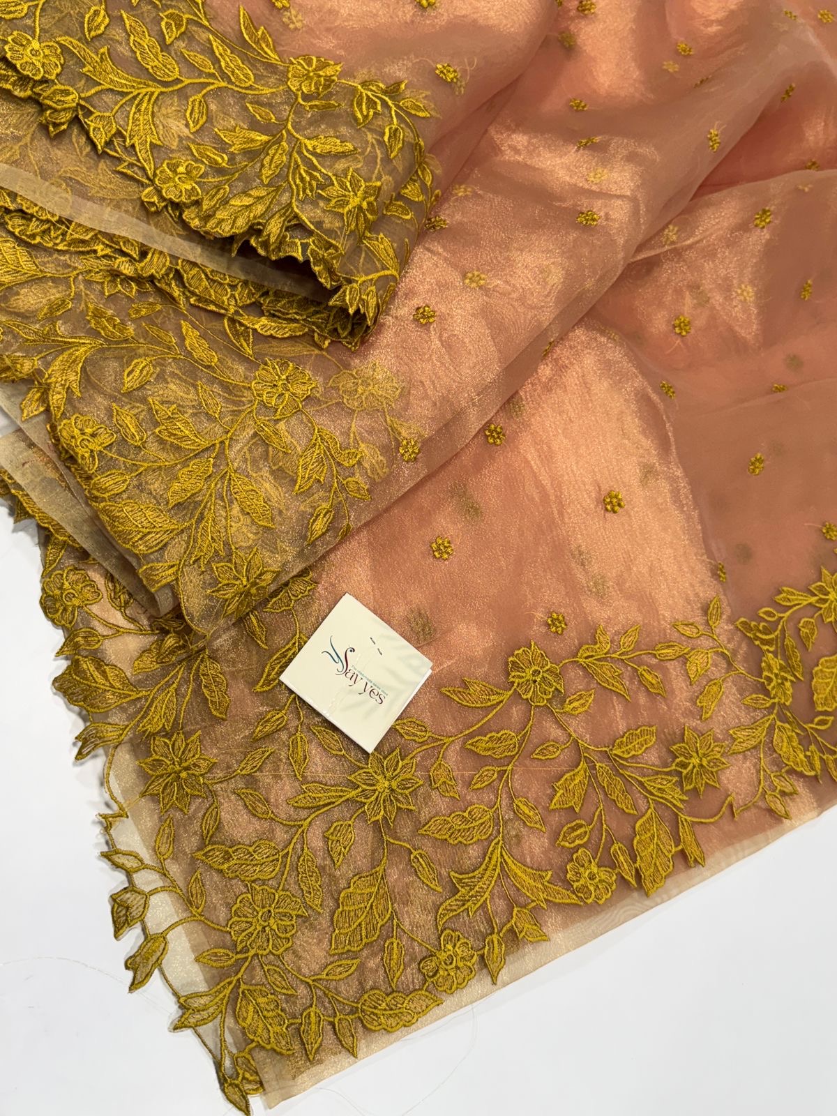 Soft as a whisper and radiant as moonlight, this premium Organza Silk saree is crafted for women who love subtle luxury. The sheer, airy drape glows with a warmivory making it effortlessly graceful for day and evening wear.
