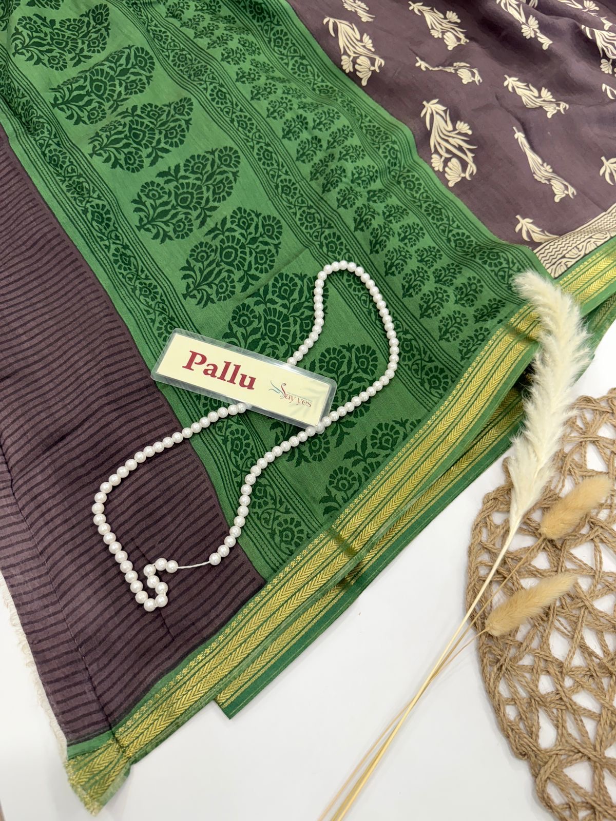 Jessi (Mul chanderi saree) – Eggplant & Green