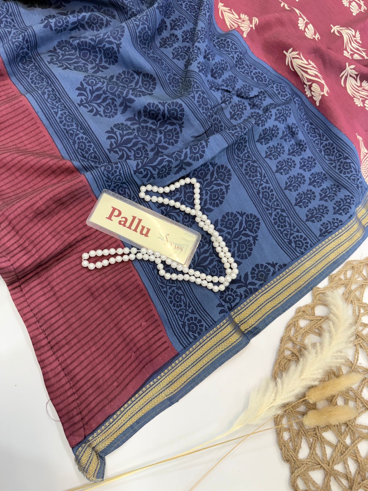 Jessi (Mul chanderi saree) – Maroon & Navy