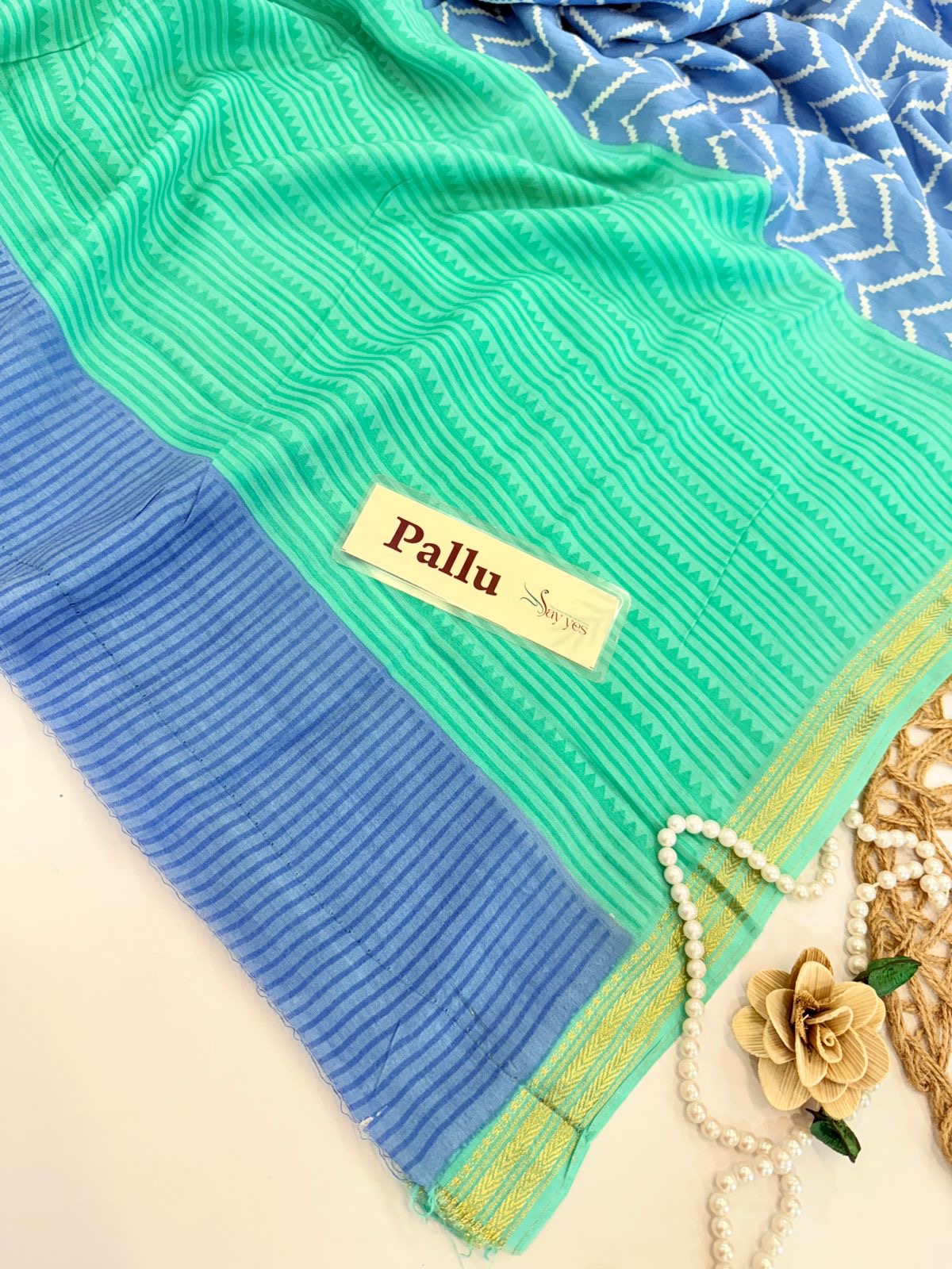 Jessi (Mul chanderi saree) – Turquoise & True blue