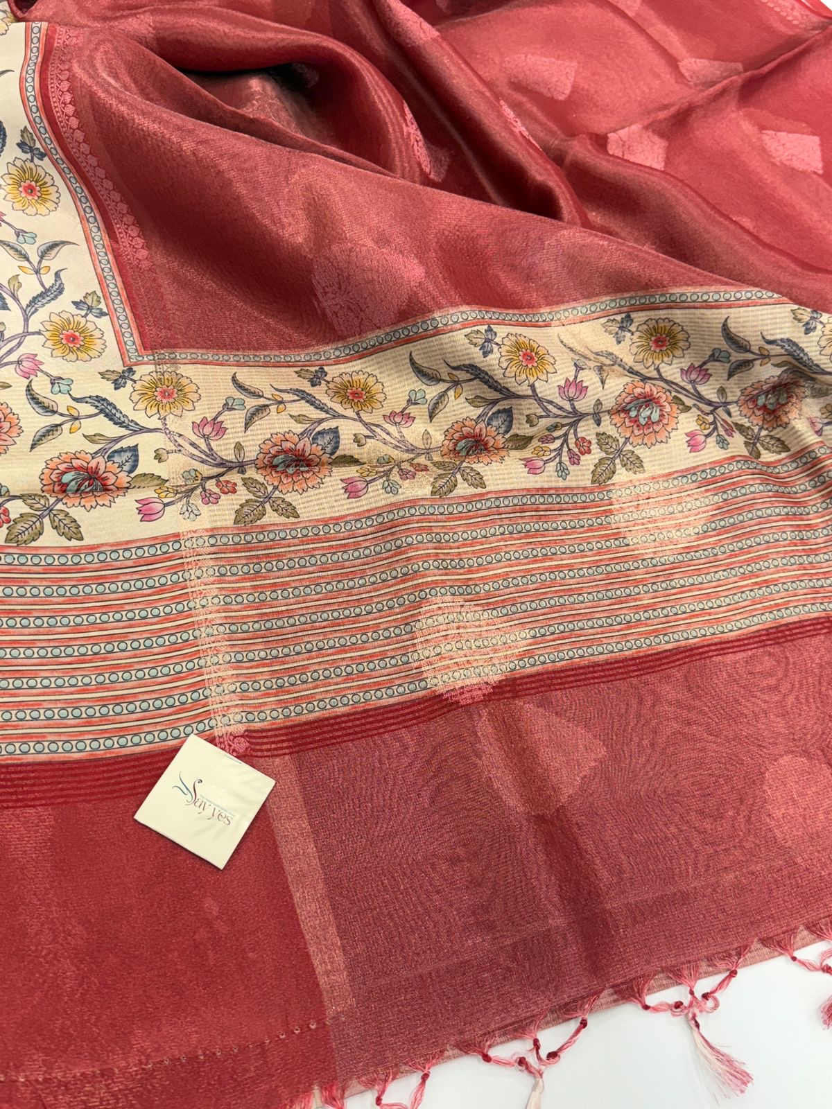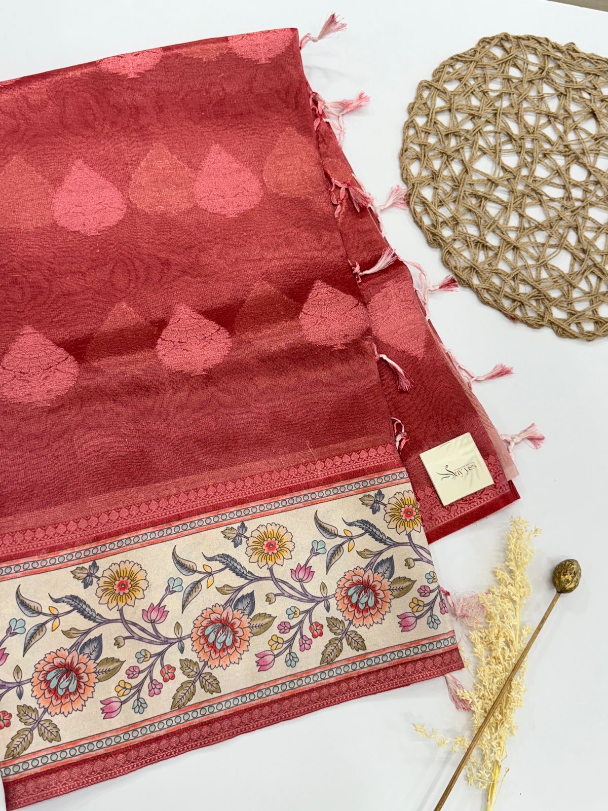 Base Color: Redpink with self-woven motifs in lighter red tones