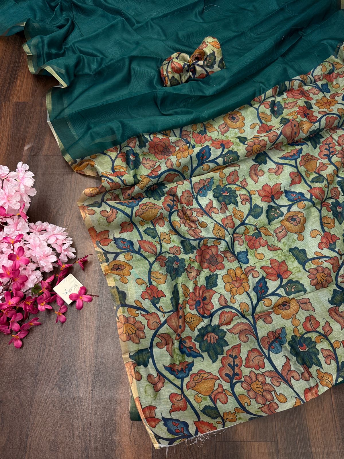 Chanderi cotton with Kalamkari – Bottle green