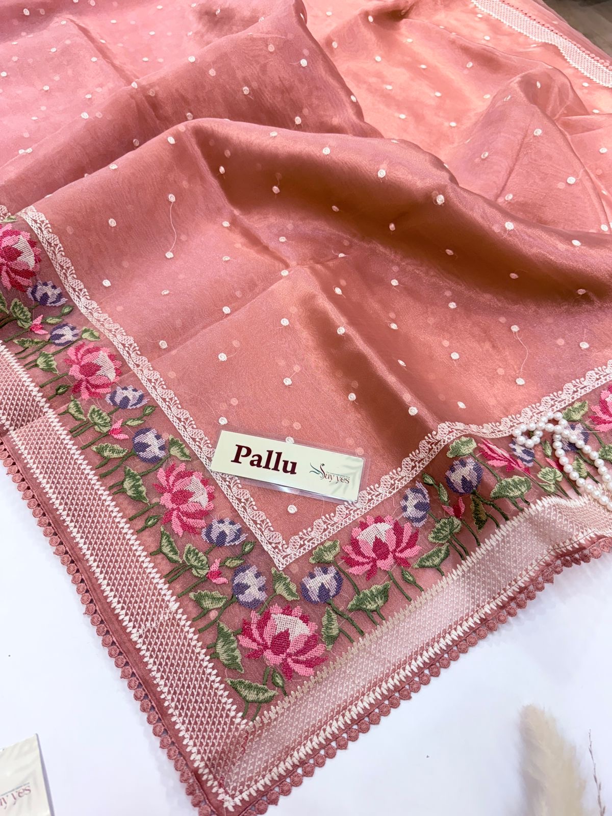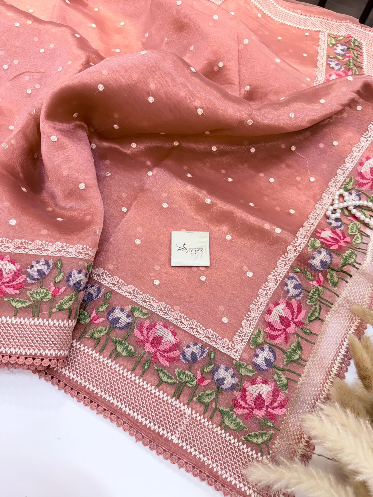 - Fabric: Pure Organza Silk Embroidered Border
