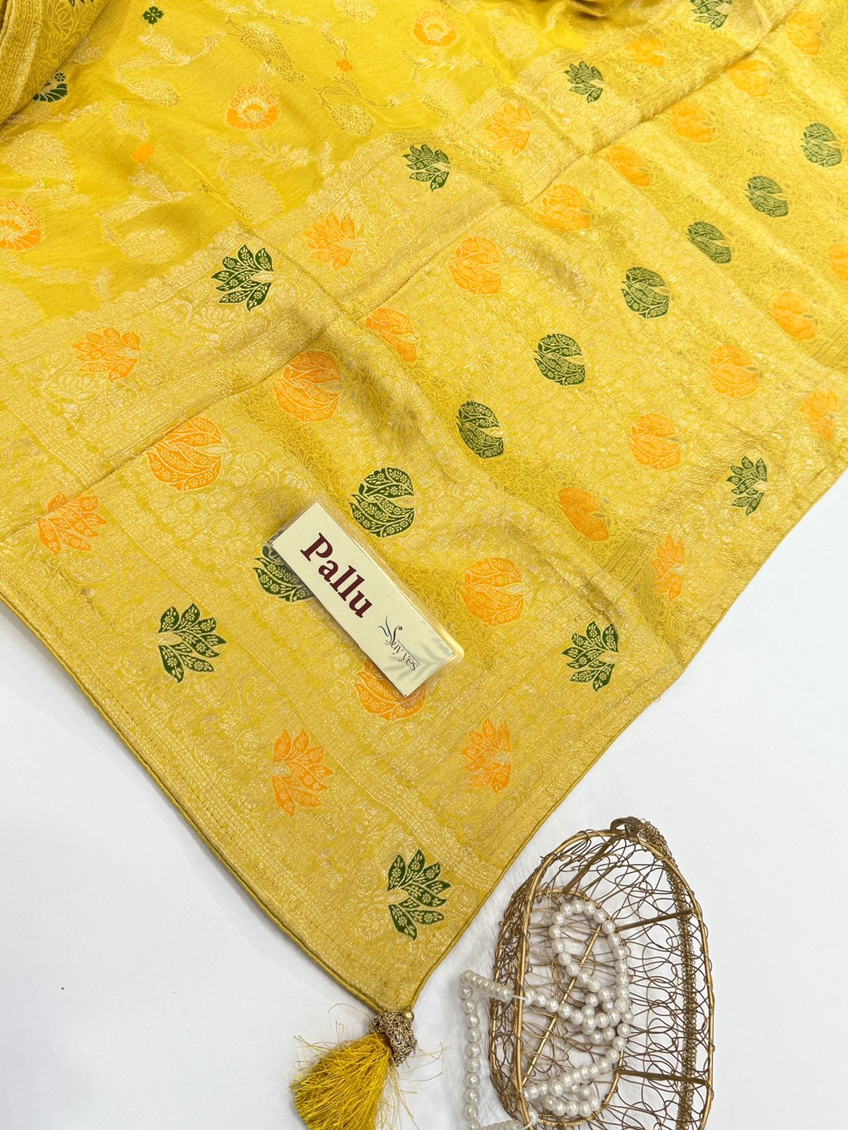 - Weave: Traditional zari work with floral & paisley motifs