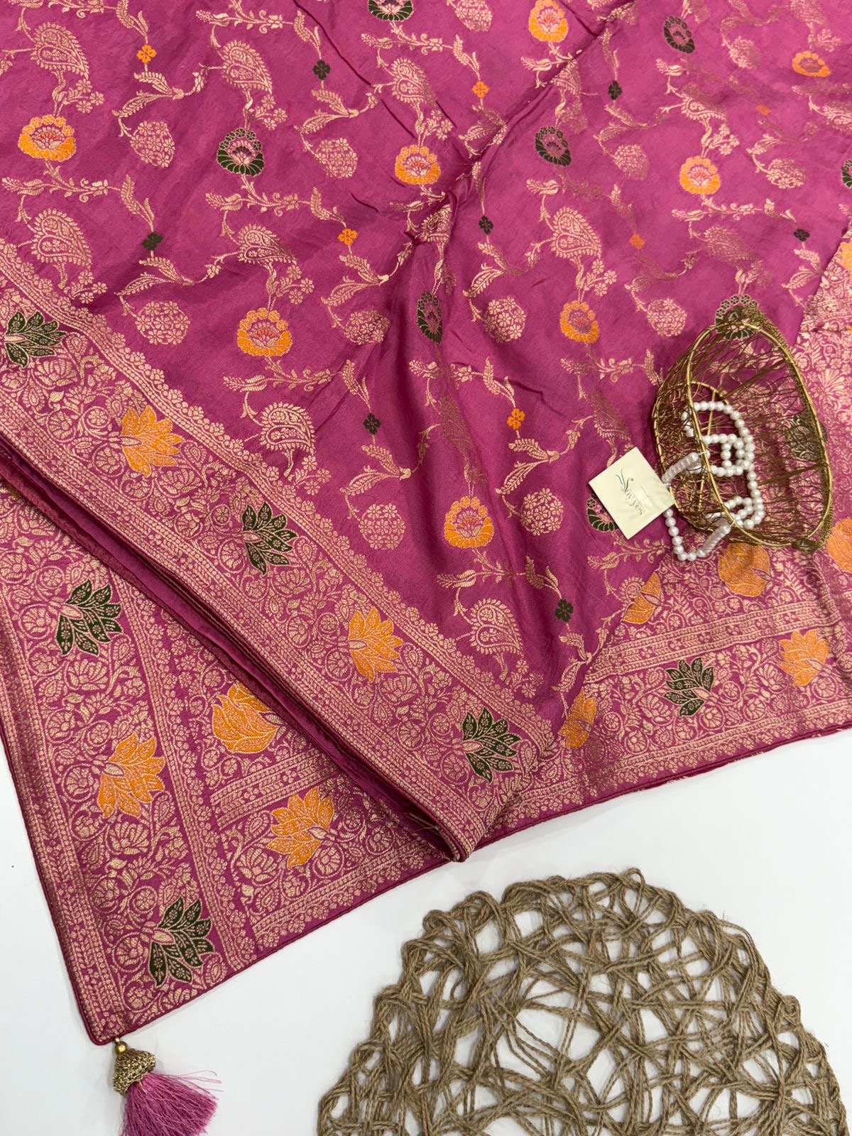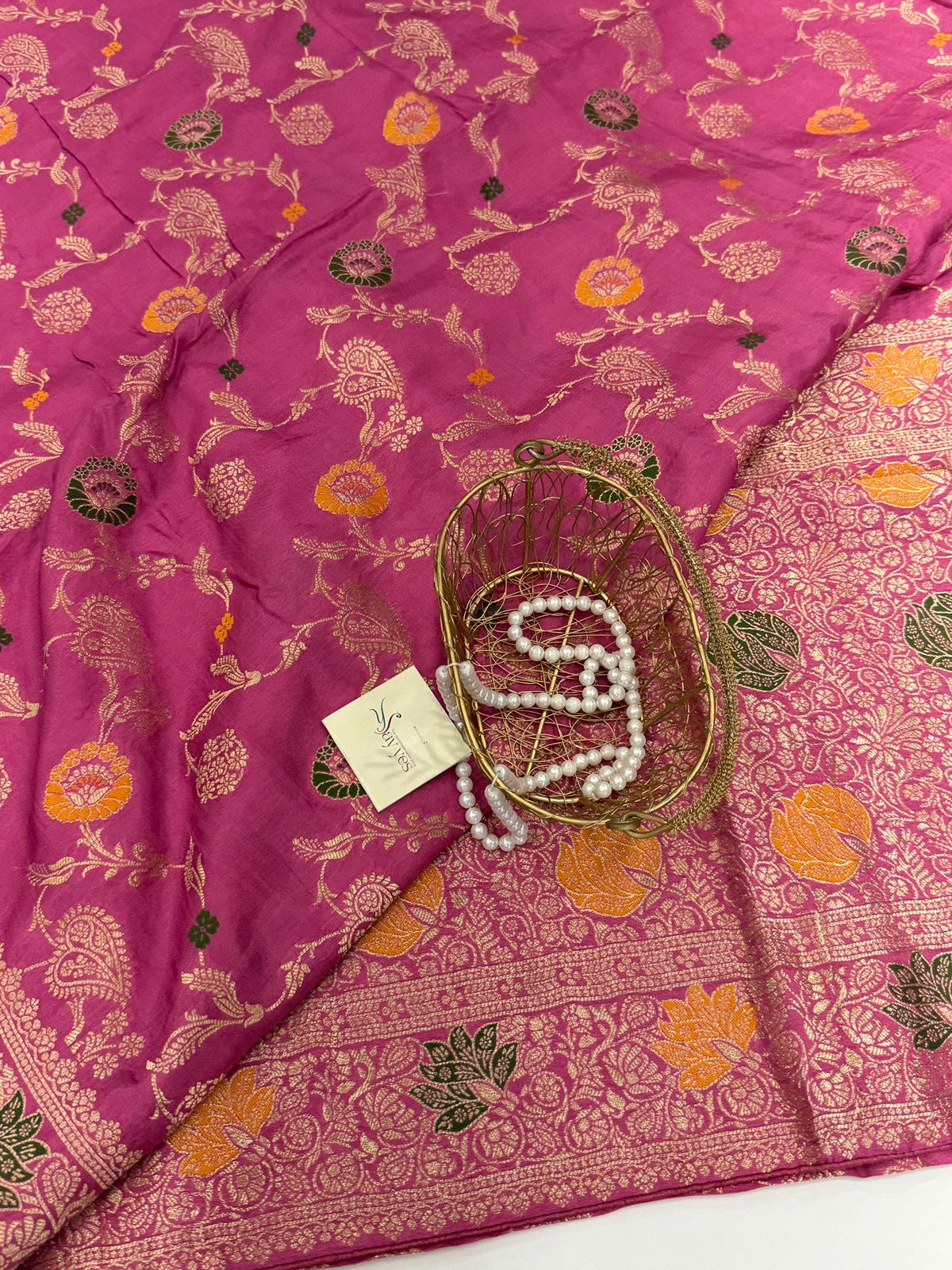 - Weave: Traditional zari work with floral & paisley motifs