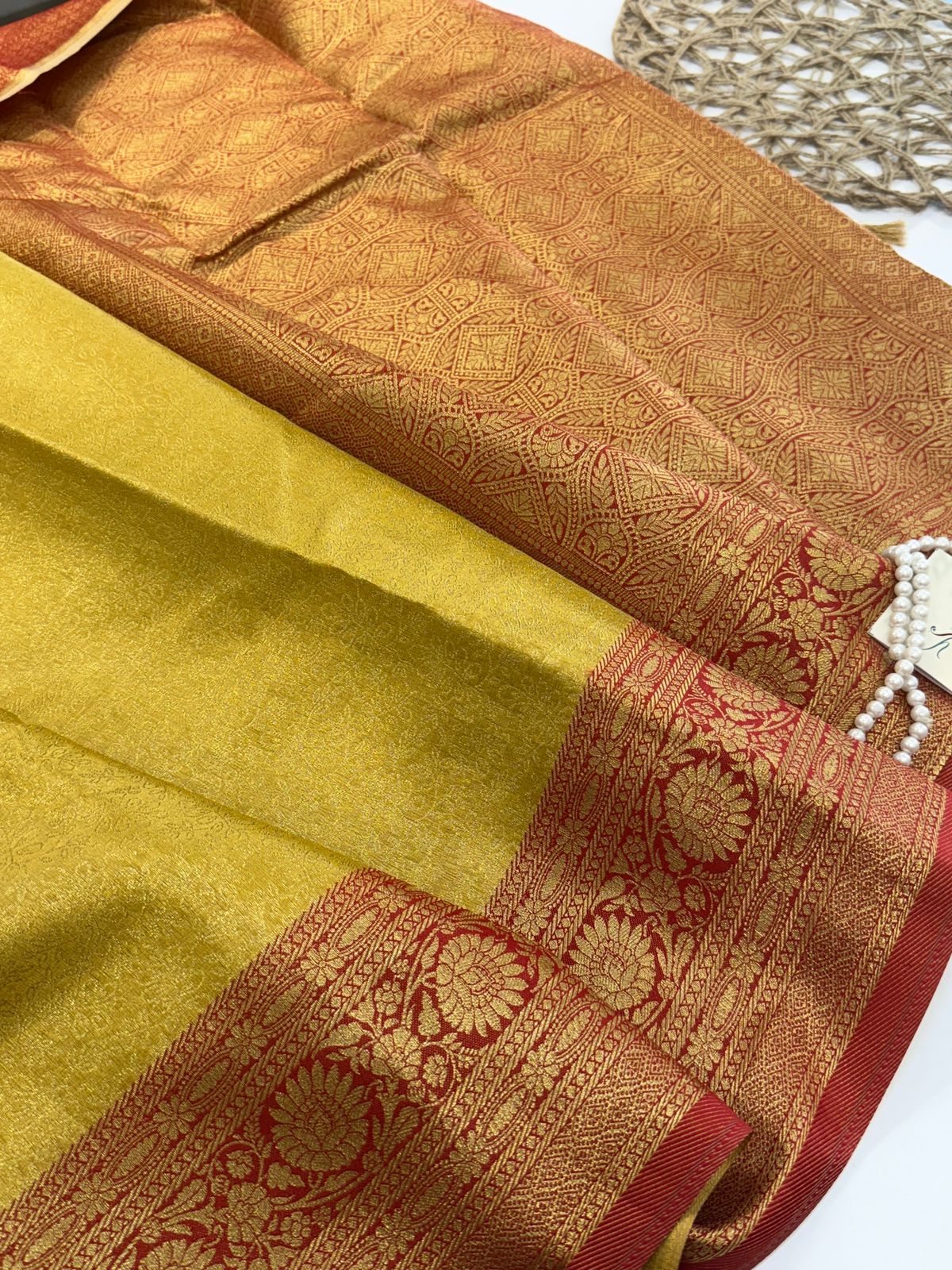 Meenakshi (Kanchi silk-blend) – Yellow & Red