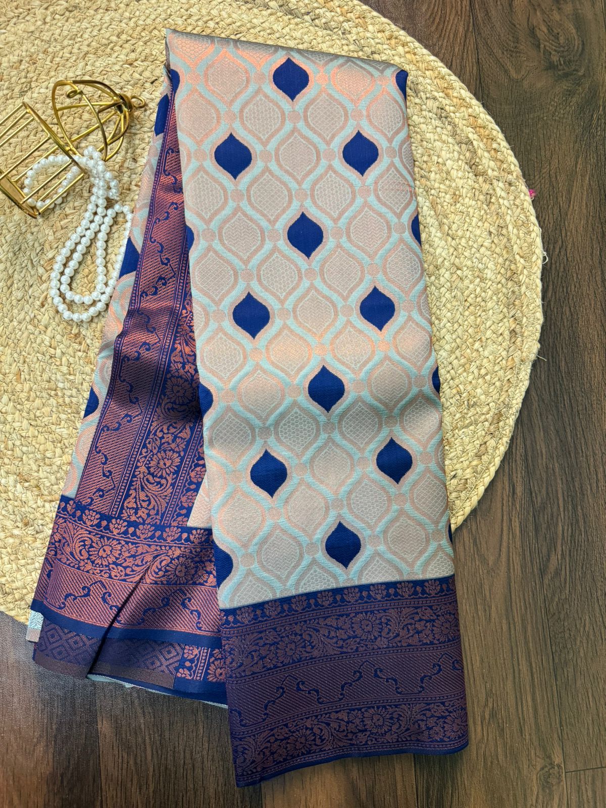 We have ingeniously chosen this piece of soft semi silk which is a perfect confluence of honeycomb zari thread woven on the body and a rich pallu in contrast elegantly to suit every Indian Occasion. Perfect to wear for Weddings and auspicious days.
