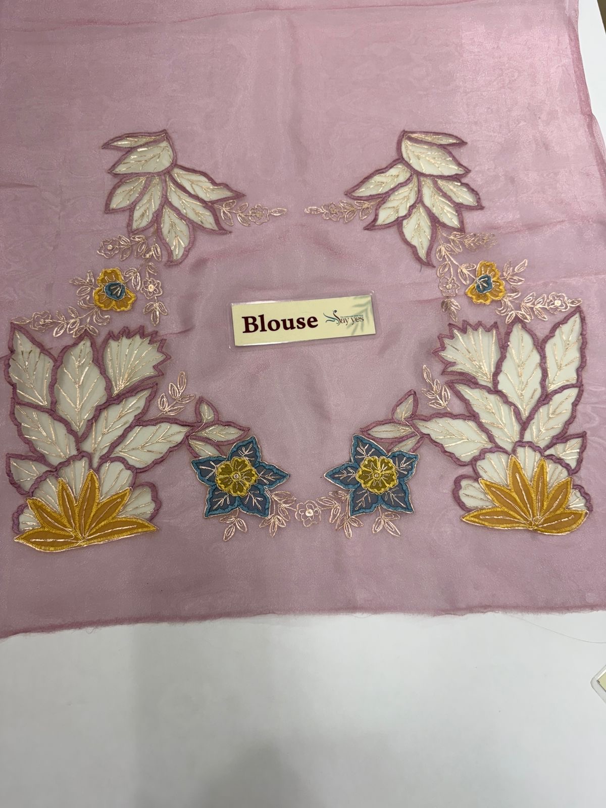 Crafted from premium soft organza, this saree carries a breezy, lightweight drape with a subtle sheen. Organza’s natural crispness gives structure to the pleats and enhances the embroidered motifs, allowing the floral details to stand out gracefully. It’s ideal for daytime occasions, brunch events, intimate celebrations, and elegant evening gatherings.