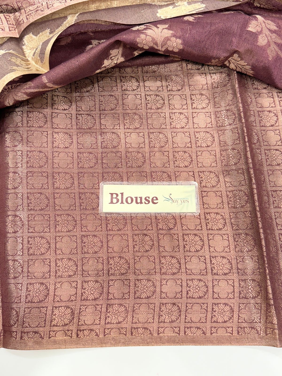 Tussar Silk — often called the “wild silk of India” — is known for its natural gold-tinted sheen and slightly textured finish. Lightweight, breathable, and rich in character, it lends every drape a royal yet earthy feel. Perfect for festive and semi-formal wear, it beautifully balances tradition and sophistication.