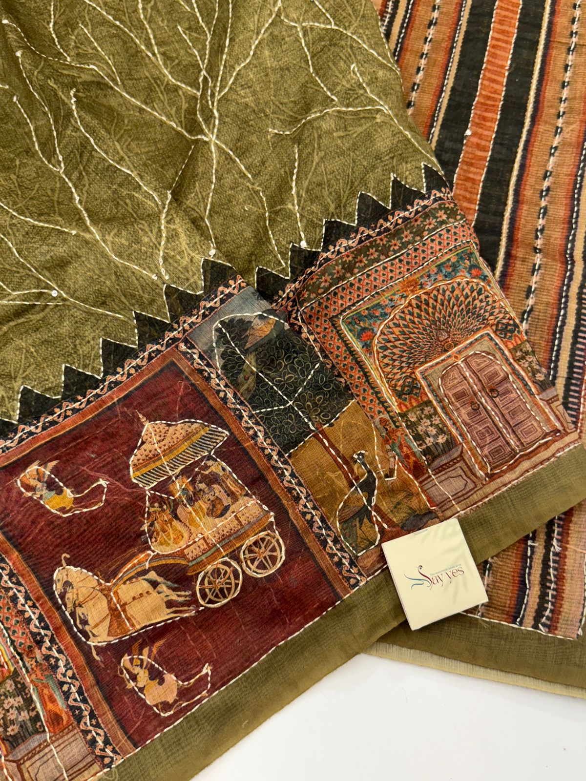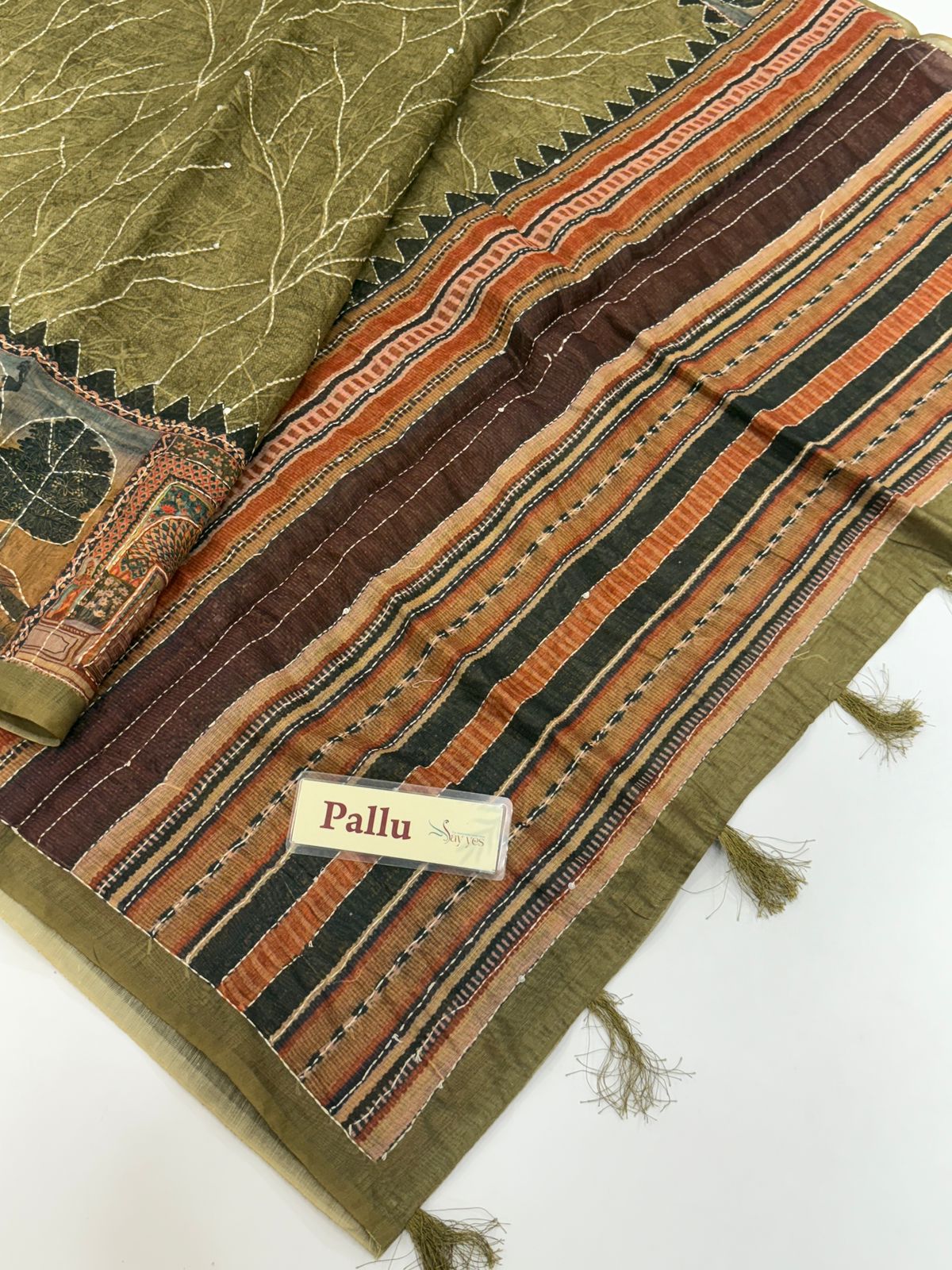 Monica (Katha embroidered Chanderi) – Moss green