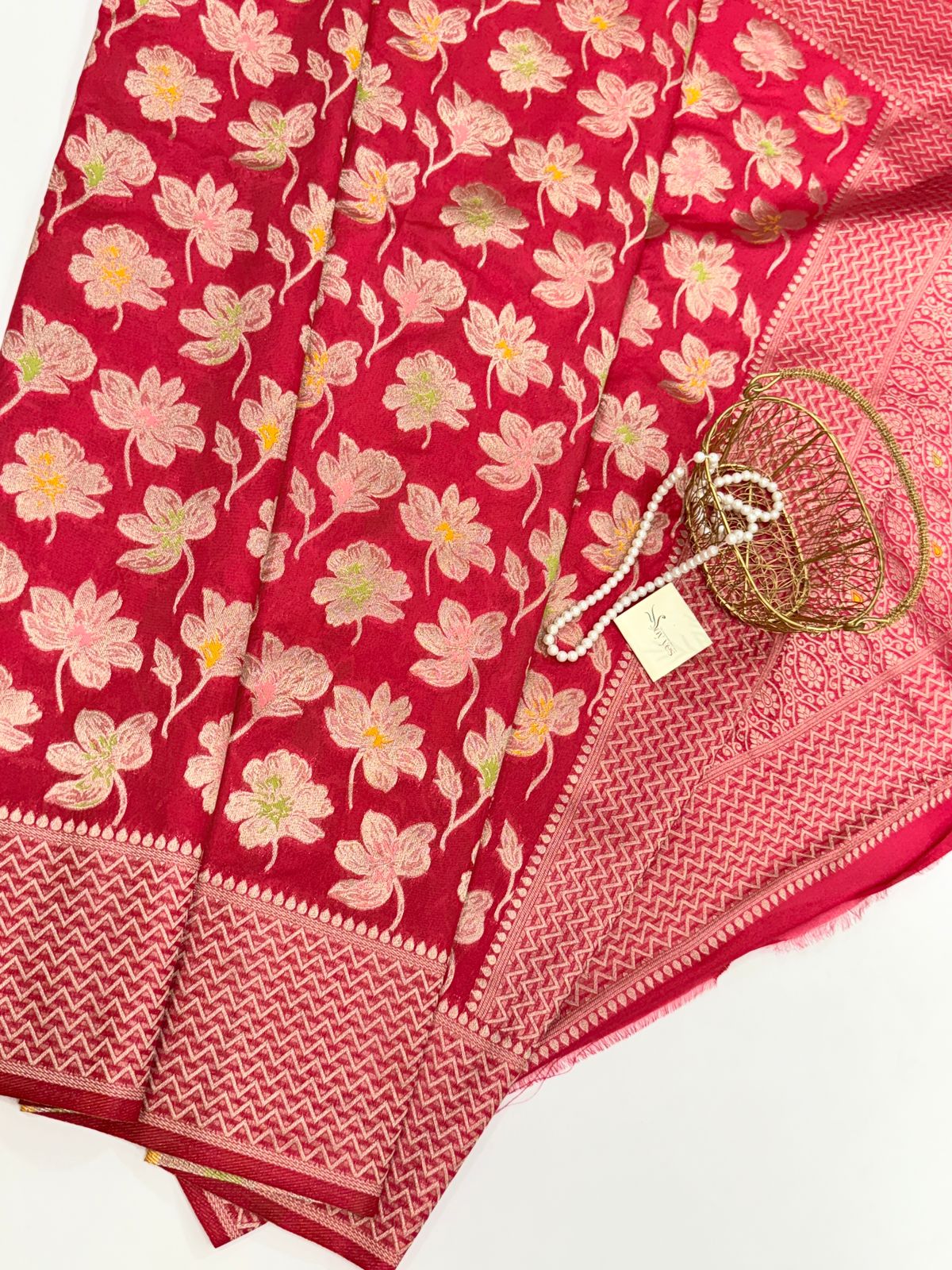 💠 Design: All-over floral zari weave with patterned border and pallu