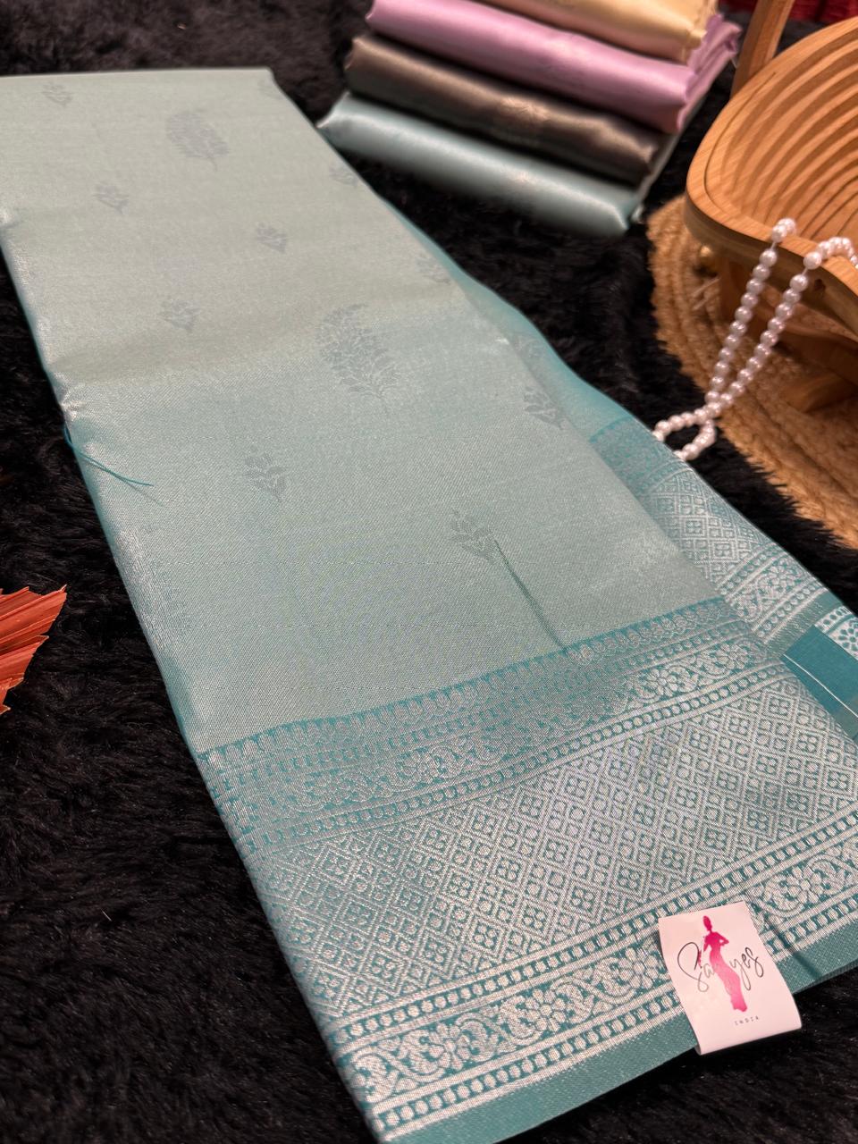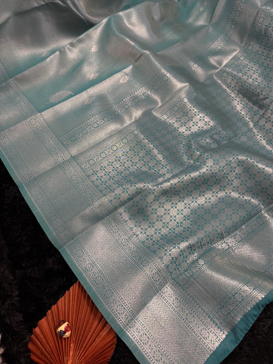 This tissue silk saree offers comfort, ease of walking and sitting, simplicity and effortless maintenance.
