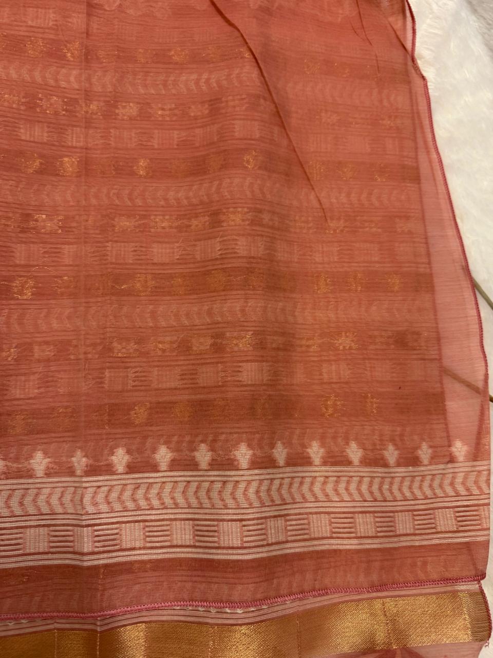 Peach saree with Janani weaving on Mul cotton