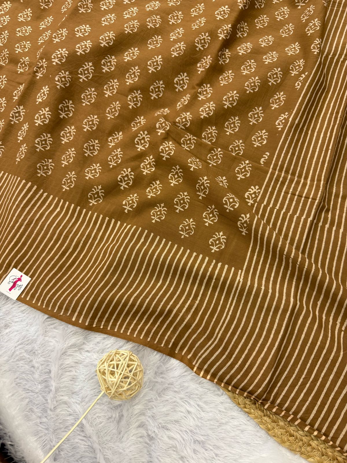 ✨ Design: Handcrafted Block Prints with a Detailed Border