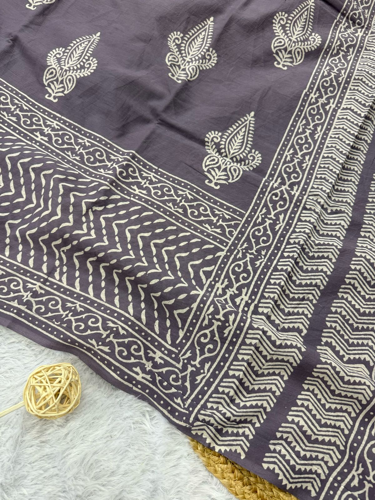 Elevate your wardrobe with this exquisite Block Printed Organic Cotton Saree, a harmonious blend of tradition and sustainability. Crafted from the finest organic cotton, this saree is lightweight, breathable, and supremely comfortable, making it perfect for all-day wear. The intricate hand-block prints, inspired by heritage motifs, add an artistic touch, while the elegant border design enhances its timeless appeal.