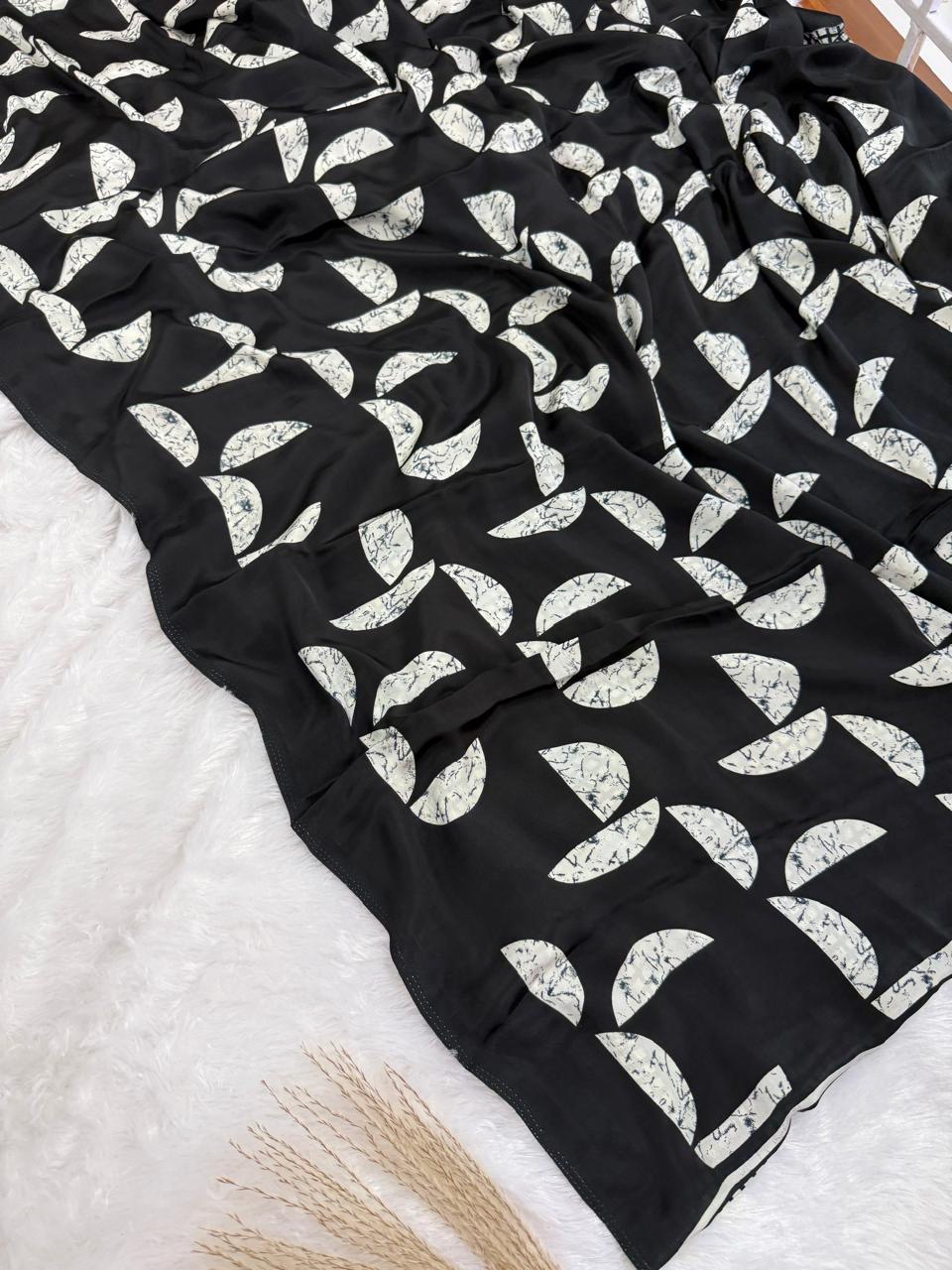 This exquisite modal silk saree is a masterpiece of elegance and tradition. The fluid drape of modal silk enhances the luxurious feel, making it effortlessly graceful. Featuring a mesmerizing Ajrakh-inspired block print, the intricate motifs in earthy hues blend heritage with contemporary aesthetics. The pleats are adorned with striking multicolored stripes, adding a bold contrast to the intricately detailed pallu. The soft yet rich texture ensures comfort while exuding timeless sophistication, perfect for festive occasions, cultural gatherings, or an elegant evening affair.