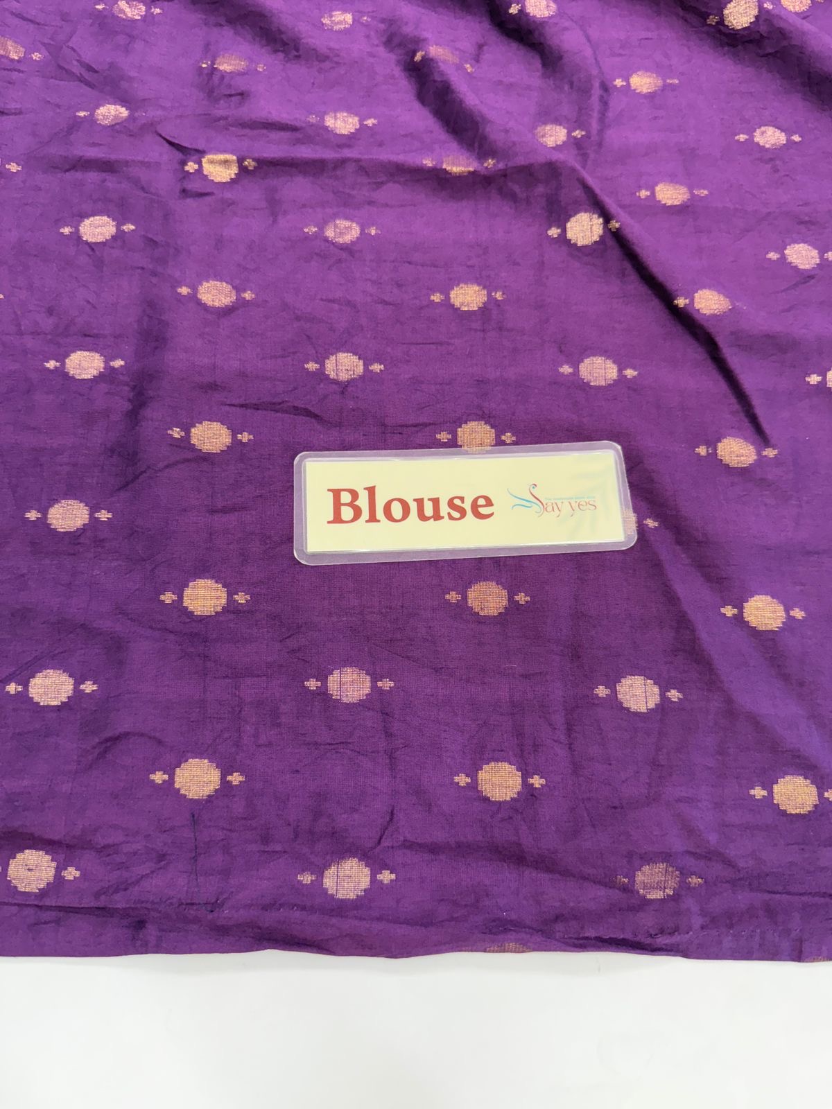 The pallu features a sophisticated purple and gold striped weave, finished with minimal tasseled edges that sway gracefully with every step. Light, fluid, and buttery soft, this saree drapes with effortless fall, making it perfect for festive mornings, intimate celebrations, or elegant soirées.