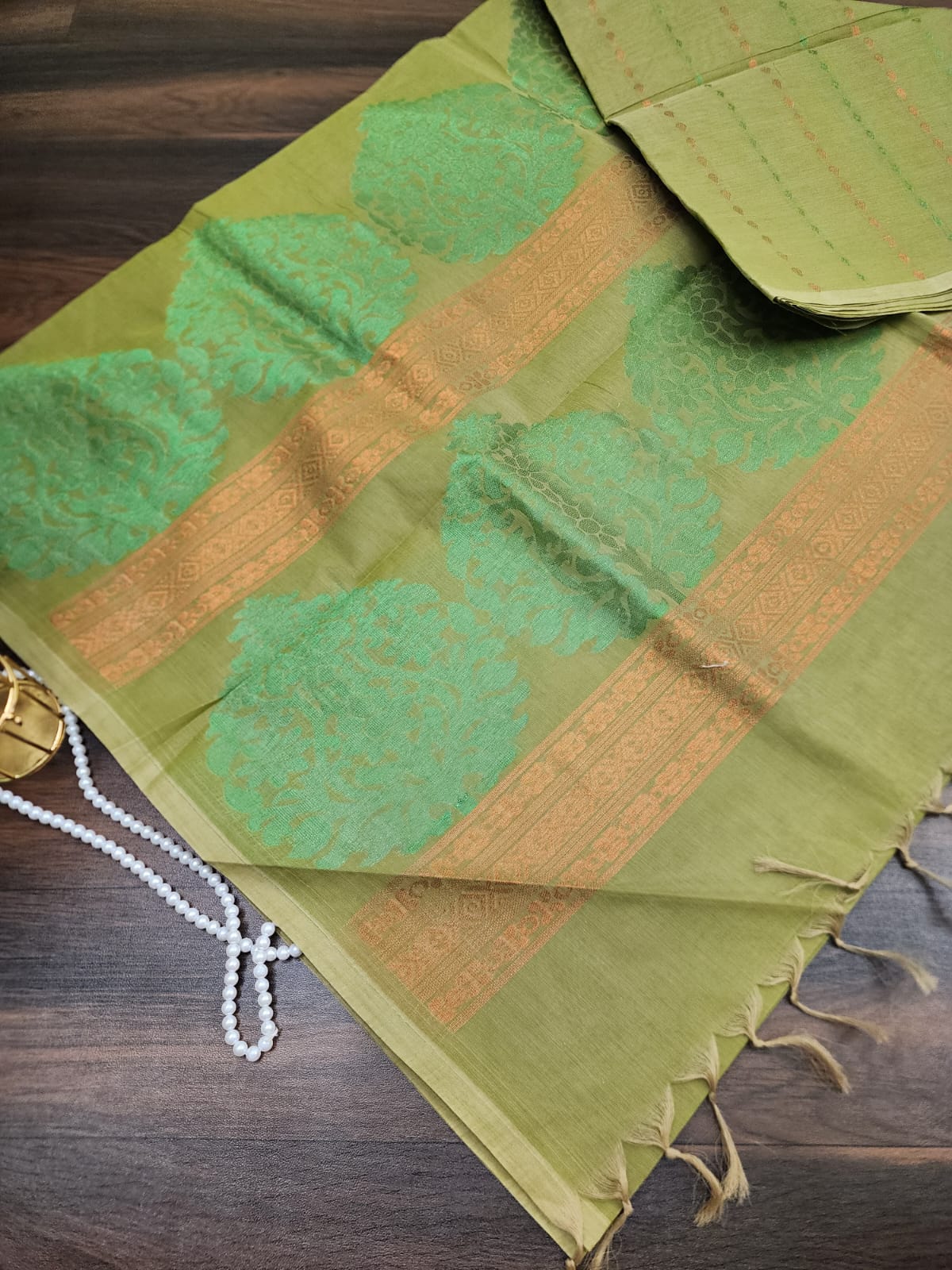 Introducing our exquisite handloom cotton saree, a fusion of tradition and modern elegance.