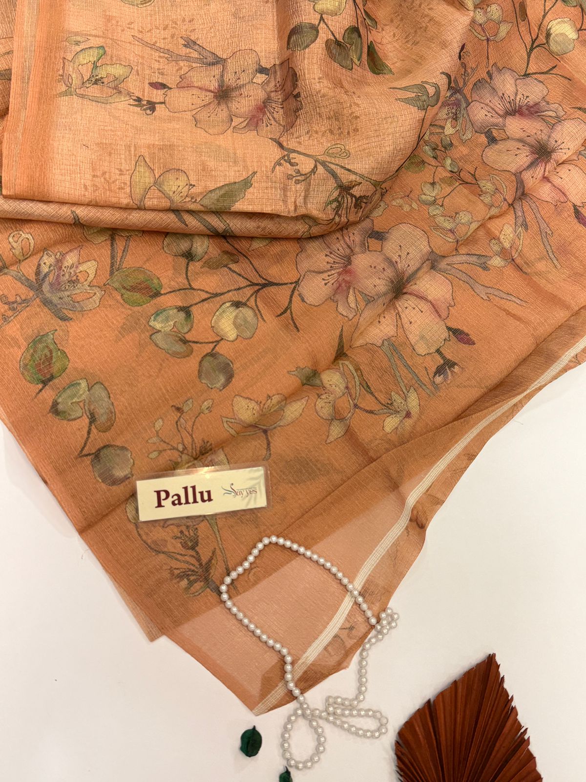This exquisite crushed tissue silk saree is a perfect blend of elegance and whimsy, featuring a delicate lavender base with a soft, crushed texture that gives it a graceful sheen and a luxurious drape. Adorned with an enchanting floral digital print in warm hues of orange, peach, yellow, and green, the saree captures the charm of a blooming garden with every fold. Lightweight yet festive, it’s ideal for day events, celebrations, or even intimate gatherings where you want to make a statement with subtle sophistication. The saree is finished with a matching rose border and comes from the boutique label SayYes, making it a refined choice for the modern woman.