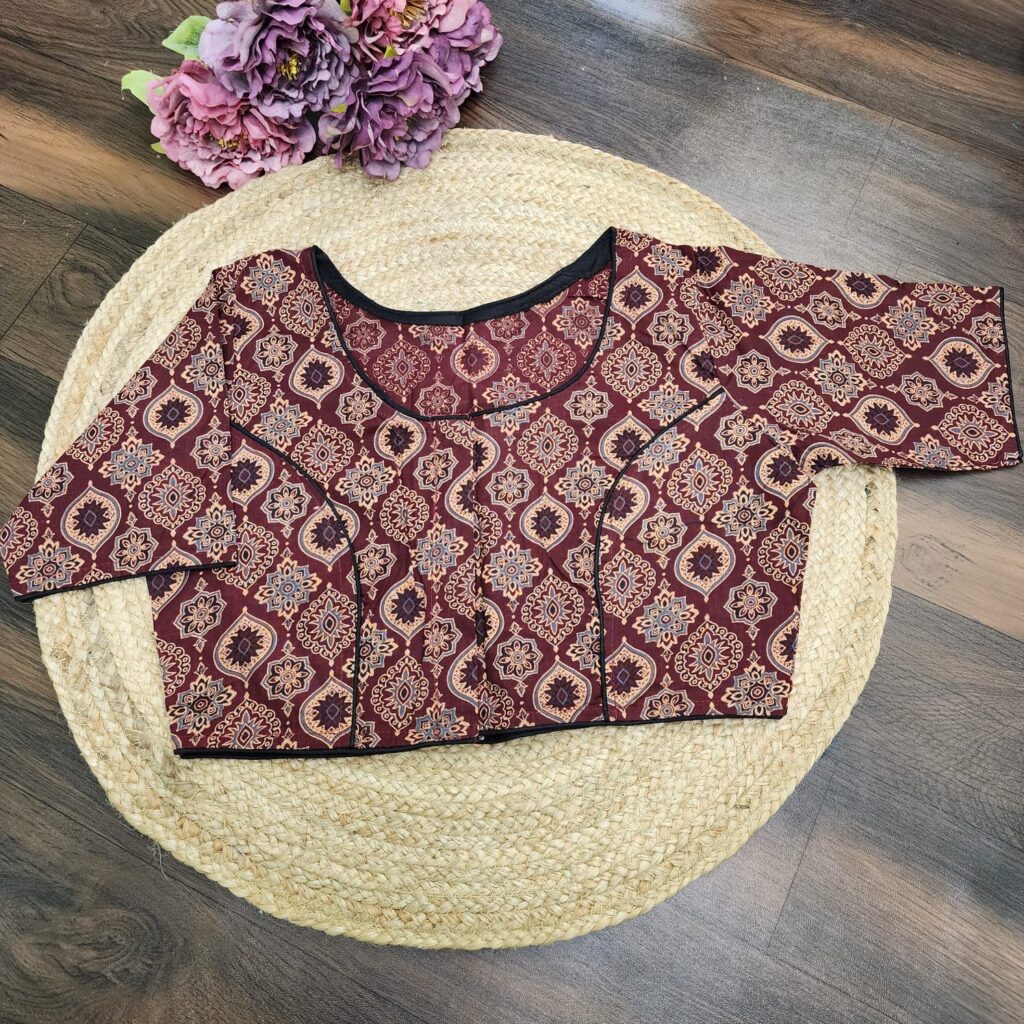 Block printed full sleeve cotton blouse with lining!