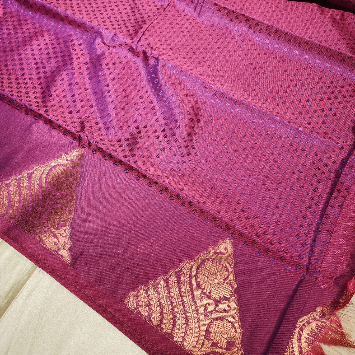 Sitara is a series of Soft silk sarees that usher a minimalistic look with modern jari woven motifs. This edition, is so unique, as it has Bronze jari woven on the body of the saree, and the pallu.