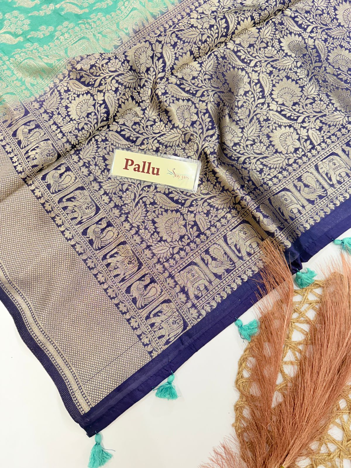 Sithara (Banarasi soft silk) – Turquoise & Navy