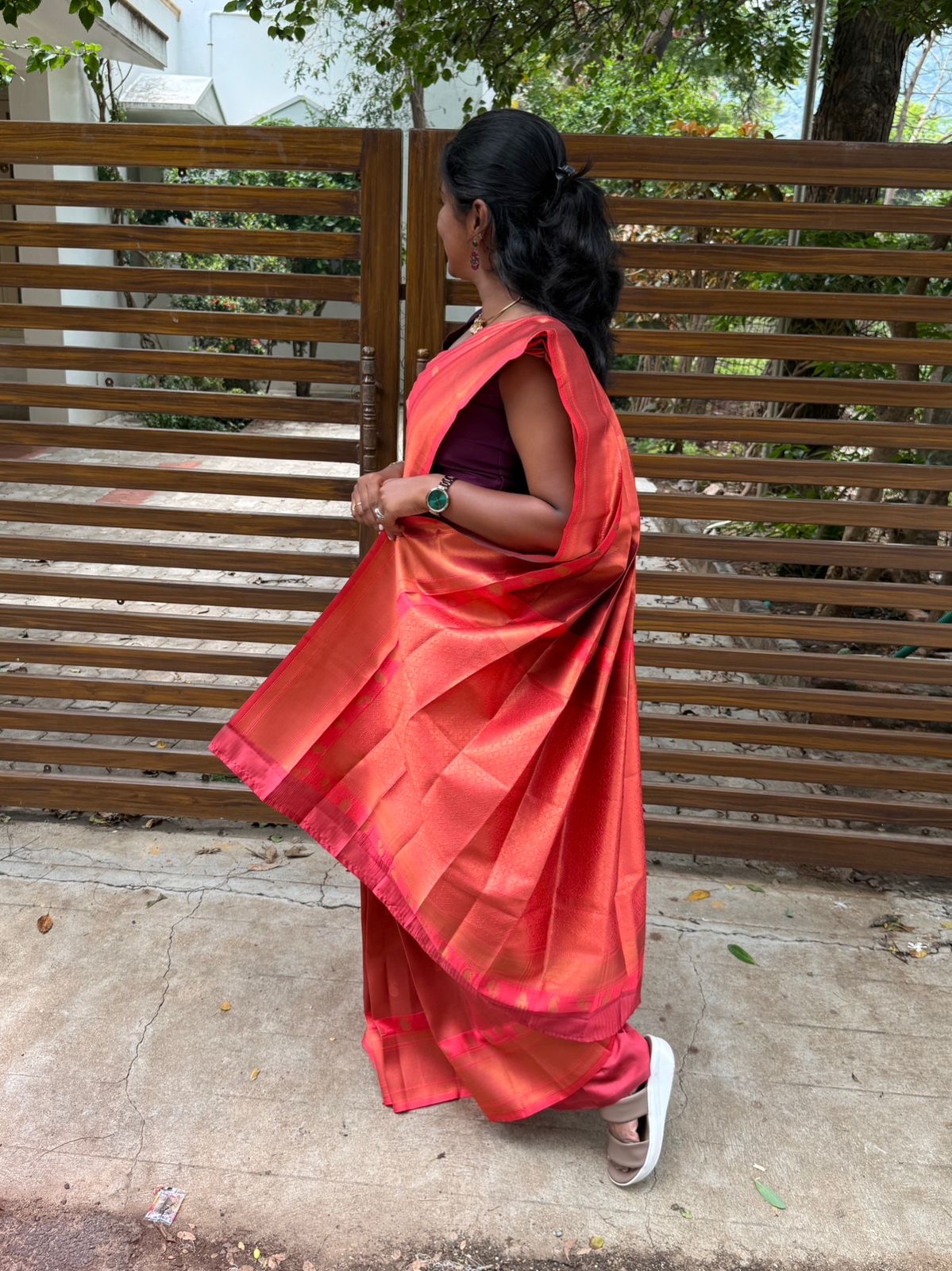 - Fabric: Rich silk-blend that mimics the heaviness and fall of pure Kancheevaram silk
