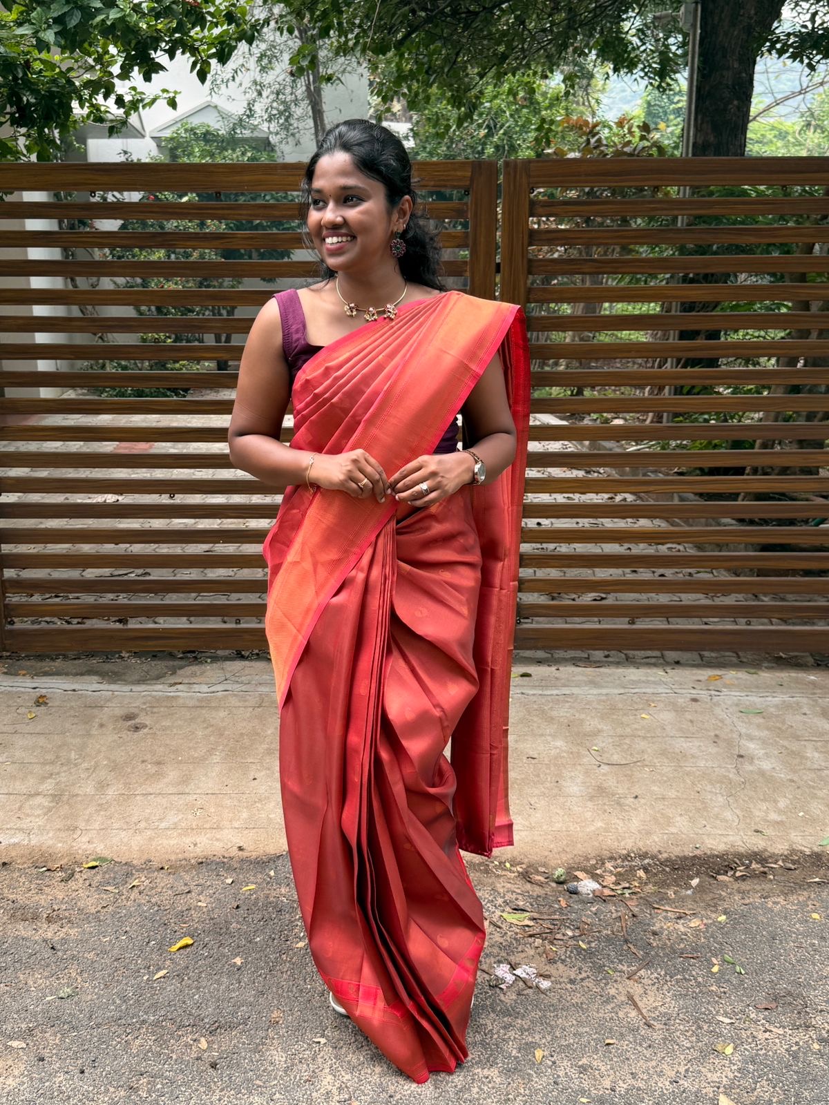 - Border: Traditional Korvai-style contrast border with delicate Banarasi buttas