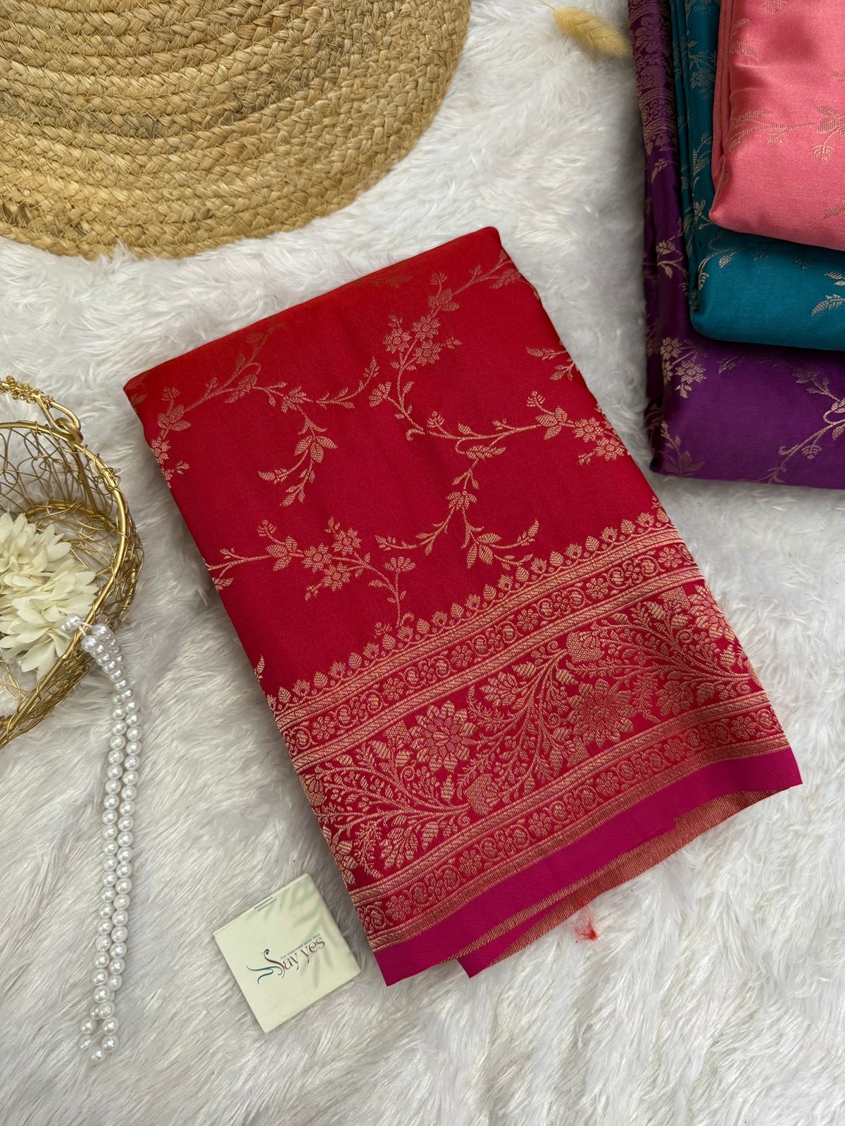 Color: Hot pink with Antique Gold Zari