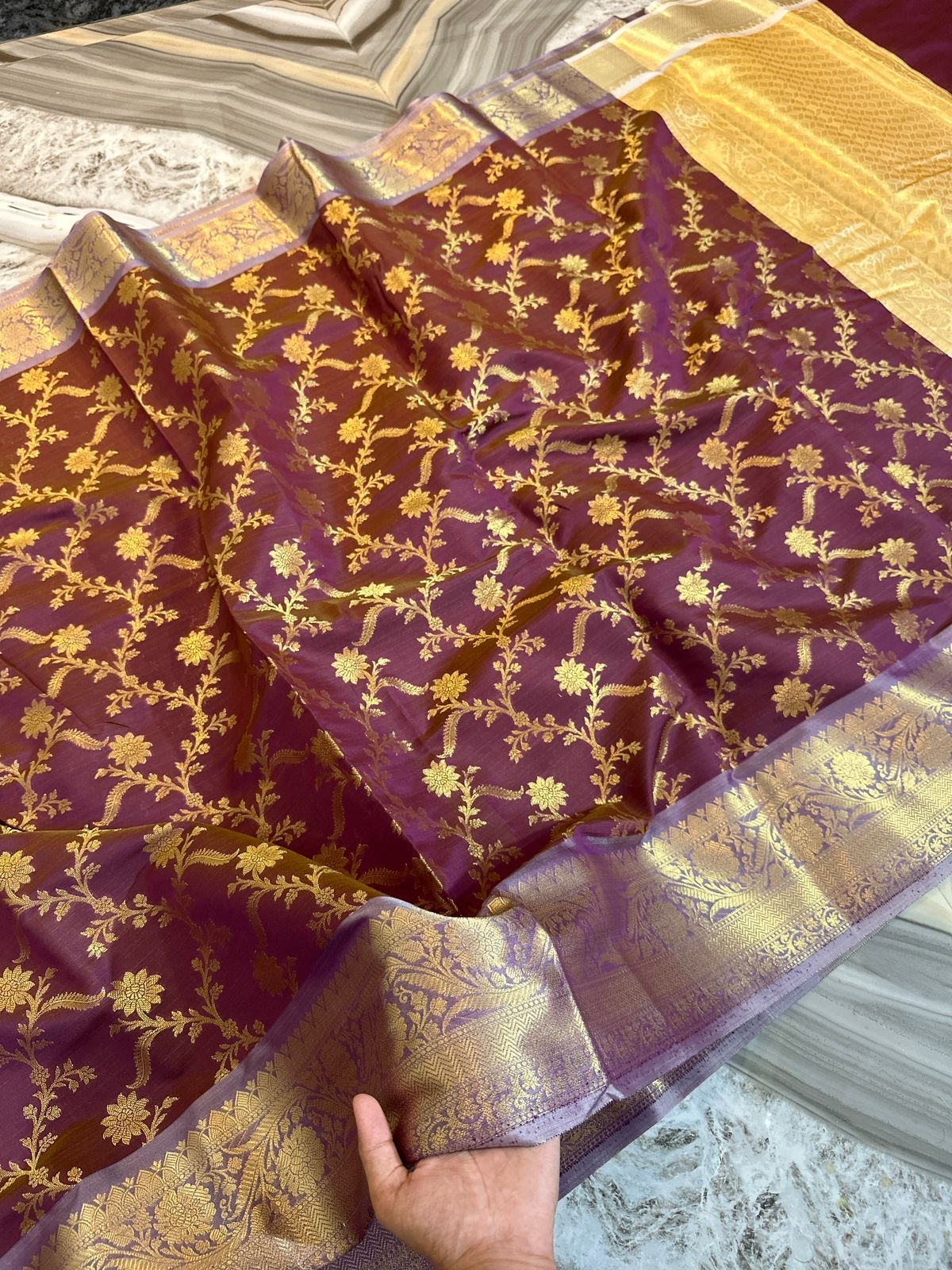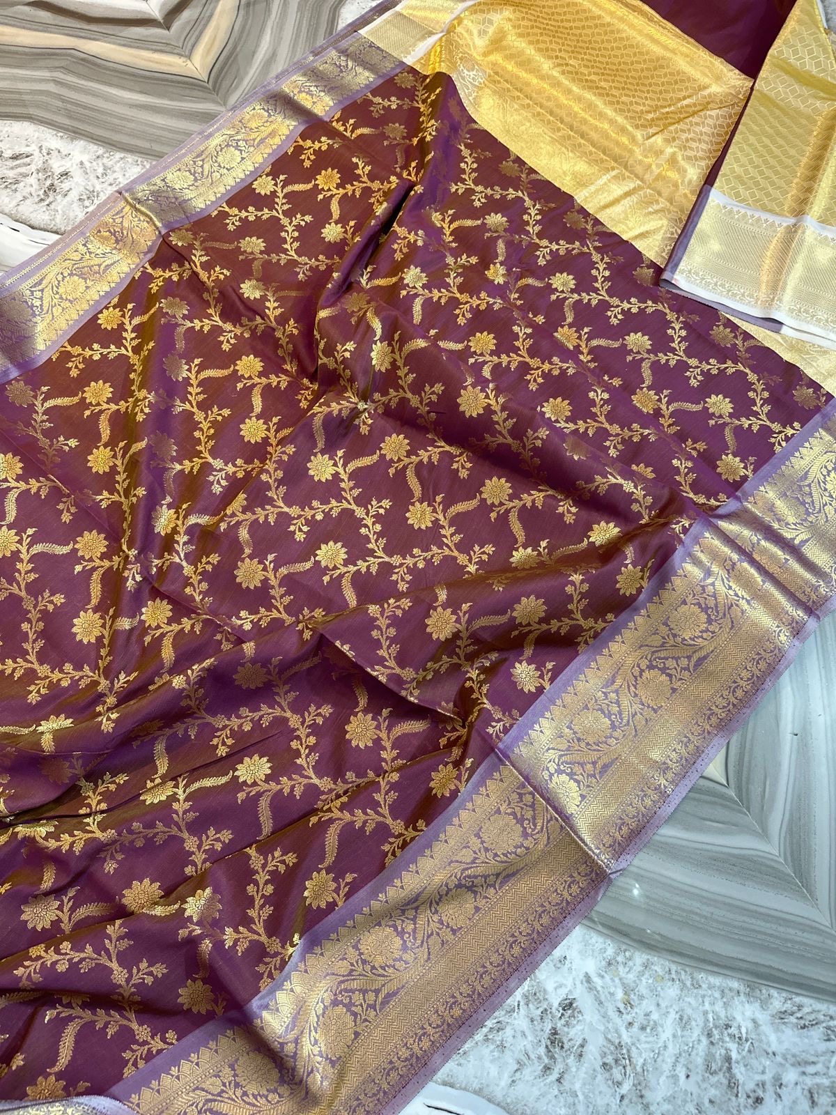 - Border: Traditional Korvai-style contrast border with delicate Banarasi buttas