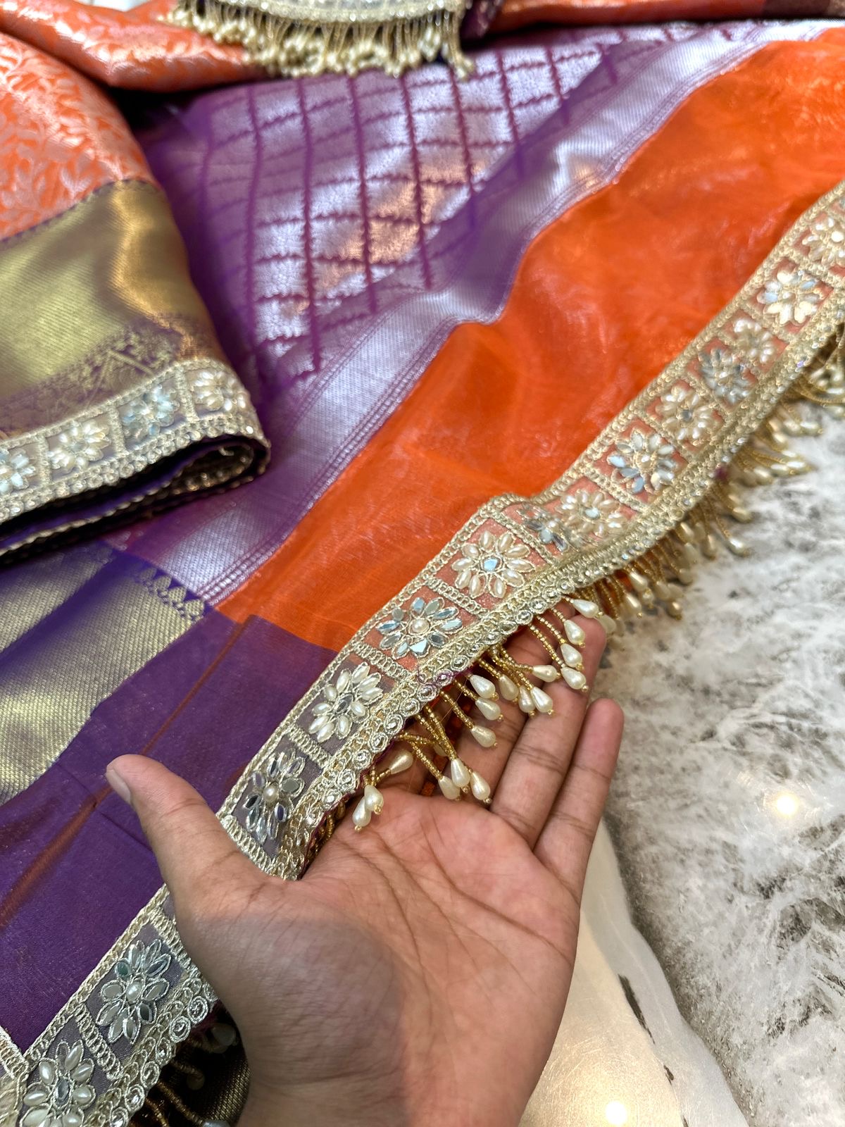 - Border: Traditional Korvai-style contrast border with delicate Banarasi buttas