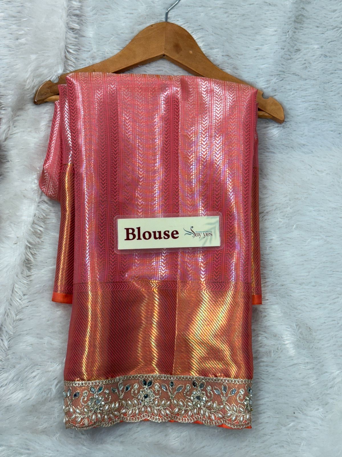 - Weave: Intricately woven gold zari motifs inspired by Mughal gardens and temple architecture