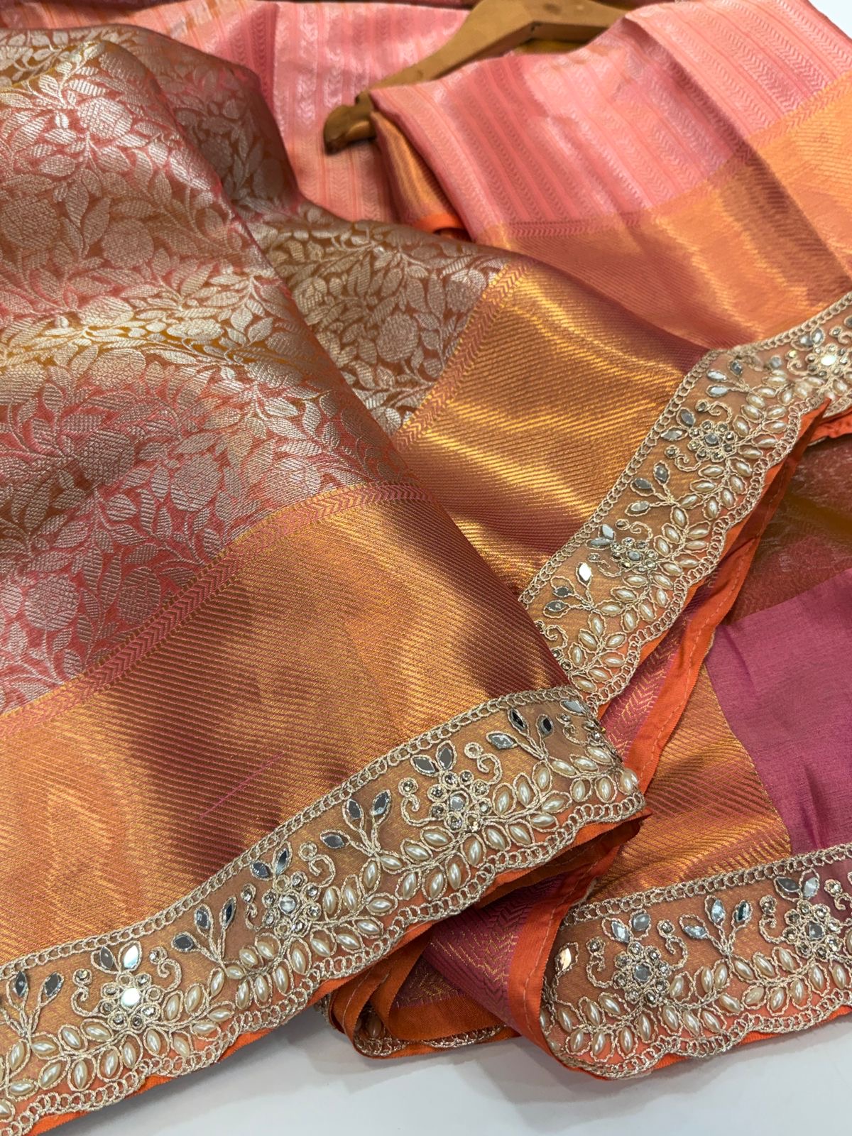 - Border: Traditional Korvai-style contrast border with delicate Banarasi buttas